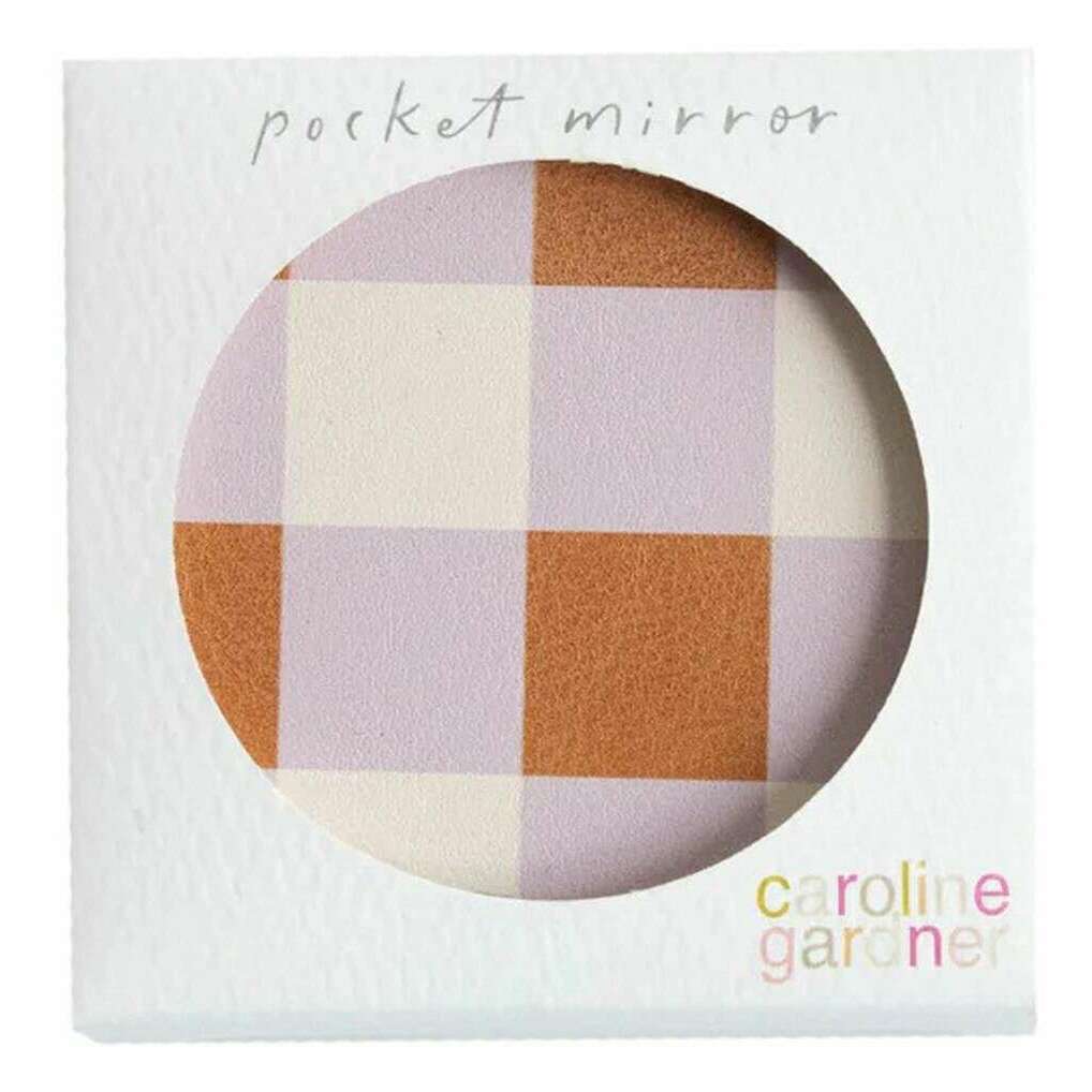 Miroir de poche carré à carreaux Caroline Gardner - Rose/Blanc/Orange