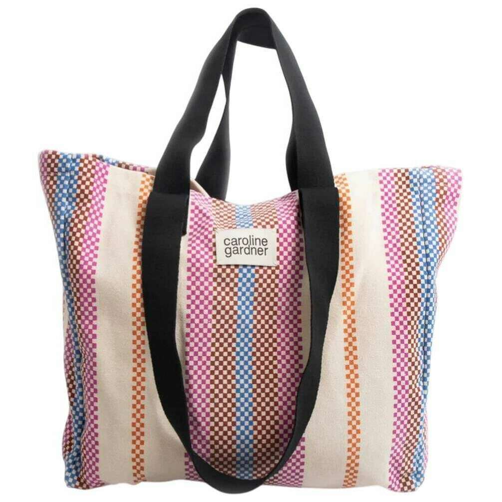 Grand sac fourre-tout en toile imprimée à carreaux Caroline Gardner - Blanc/Rose/Orange