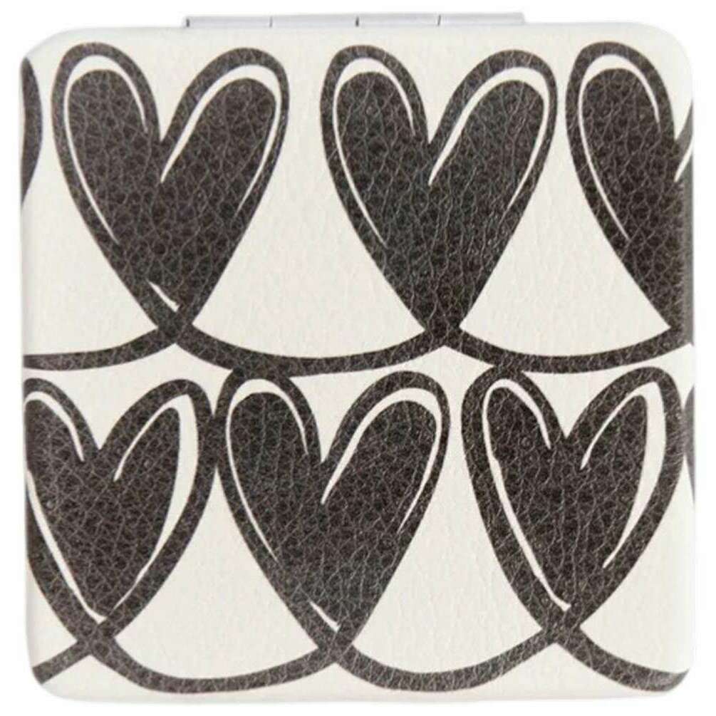 Caroline Gardner Miroir de Poche Carré Mono Linked Hearts - Crème/Noir