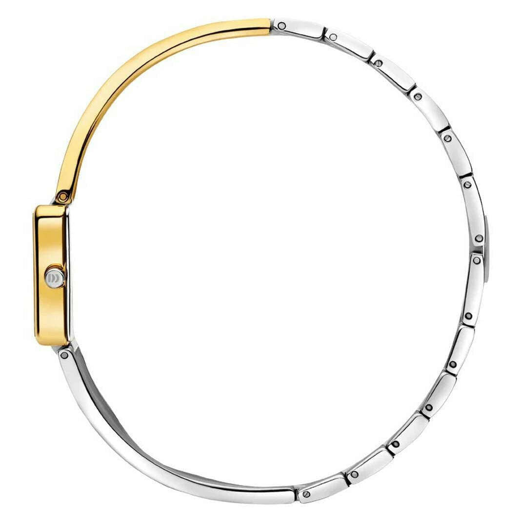 Cette montre bicolore argent/or Palma de conception danoise est parfaite pour les femmes, elle est également fabriquée en acier inoxydable. Il mesure 2 cm x 2,6 cm (diamètre du boîtier). Toutes les montres sont livrées avec un emballage au design danois. La montre bicolore Danish Design Palma - Argent/Or est un design délicat et élégant qui ajoutera une touche de brillance et d'élégance à n'importe quelle tenue. Dotée d'un boîtier en métal poli argent et or, cette superbe montre affiche un cadran carré avec des aiguilles et des index dorés et est solidement fermée par un fermoir bijou. Alimentée par un mouvement à quartz précis Miyota GL22 et étanche jusqu'à 3 ATM, cette montre allie attrait intemporel et praticité au quotidien. Fini avec une sangle unique de style bracelet bicolore.