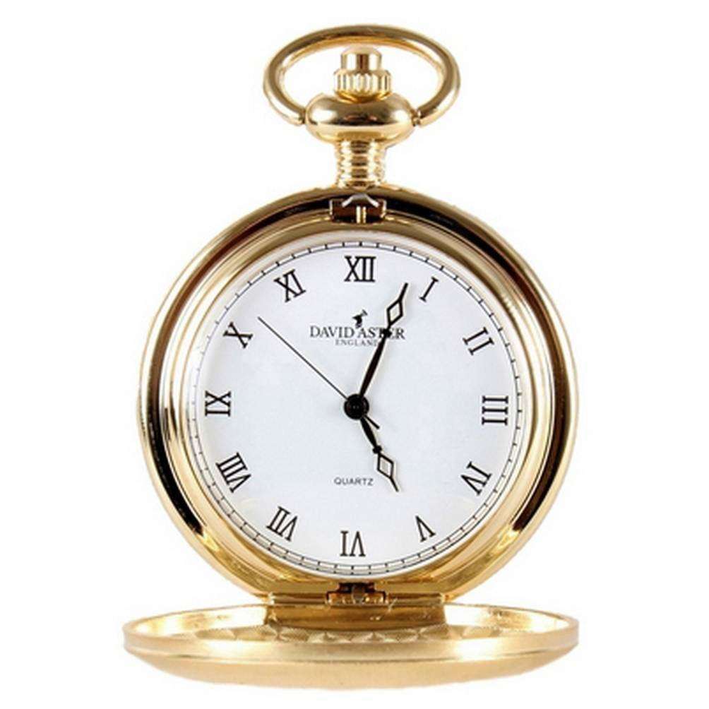 David Aster Brossed Quartz Full Hunter Pocket Watch - Gold