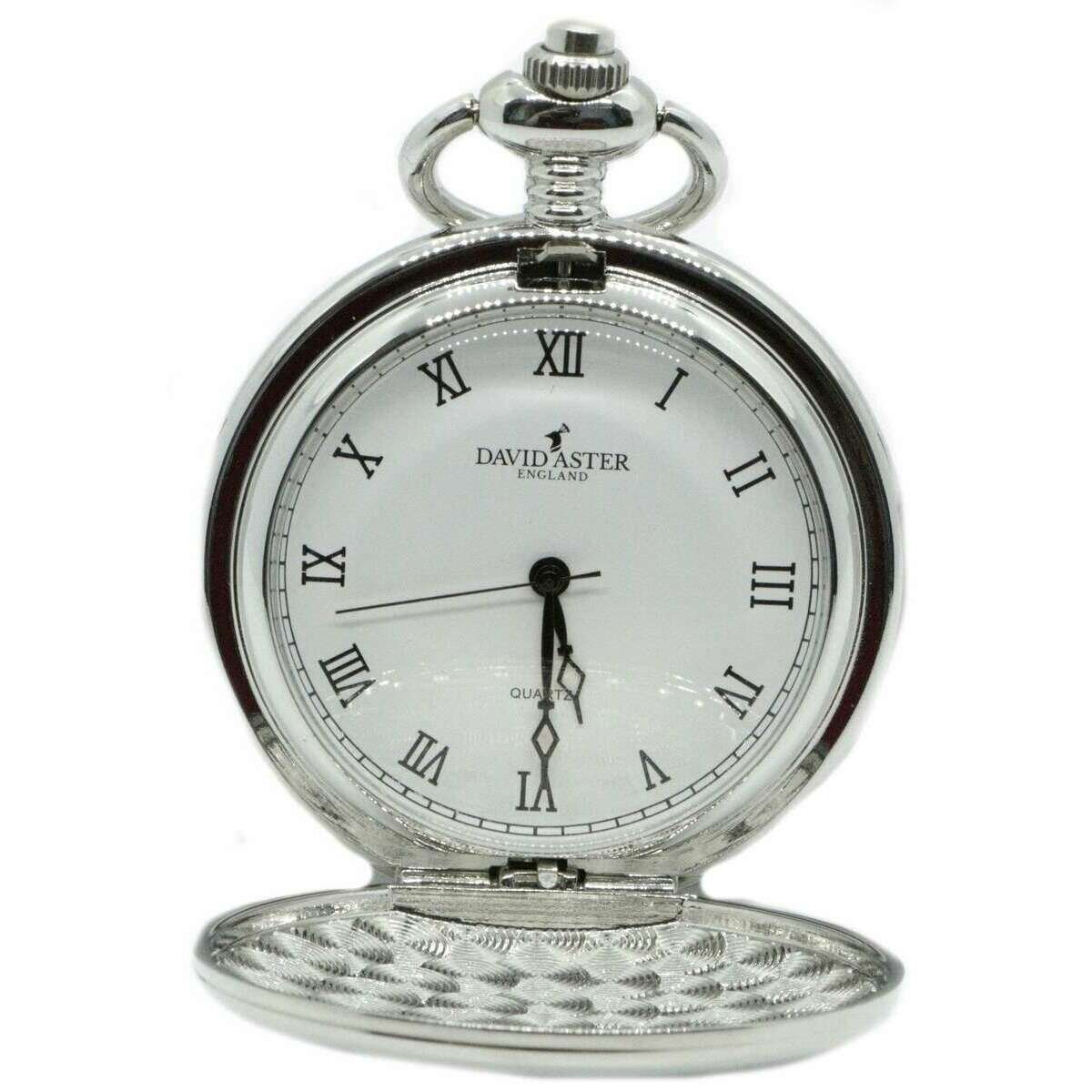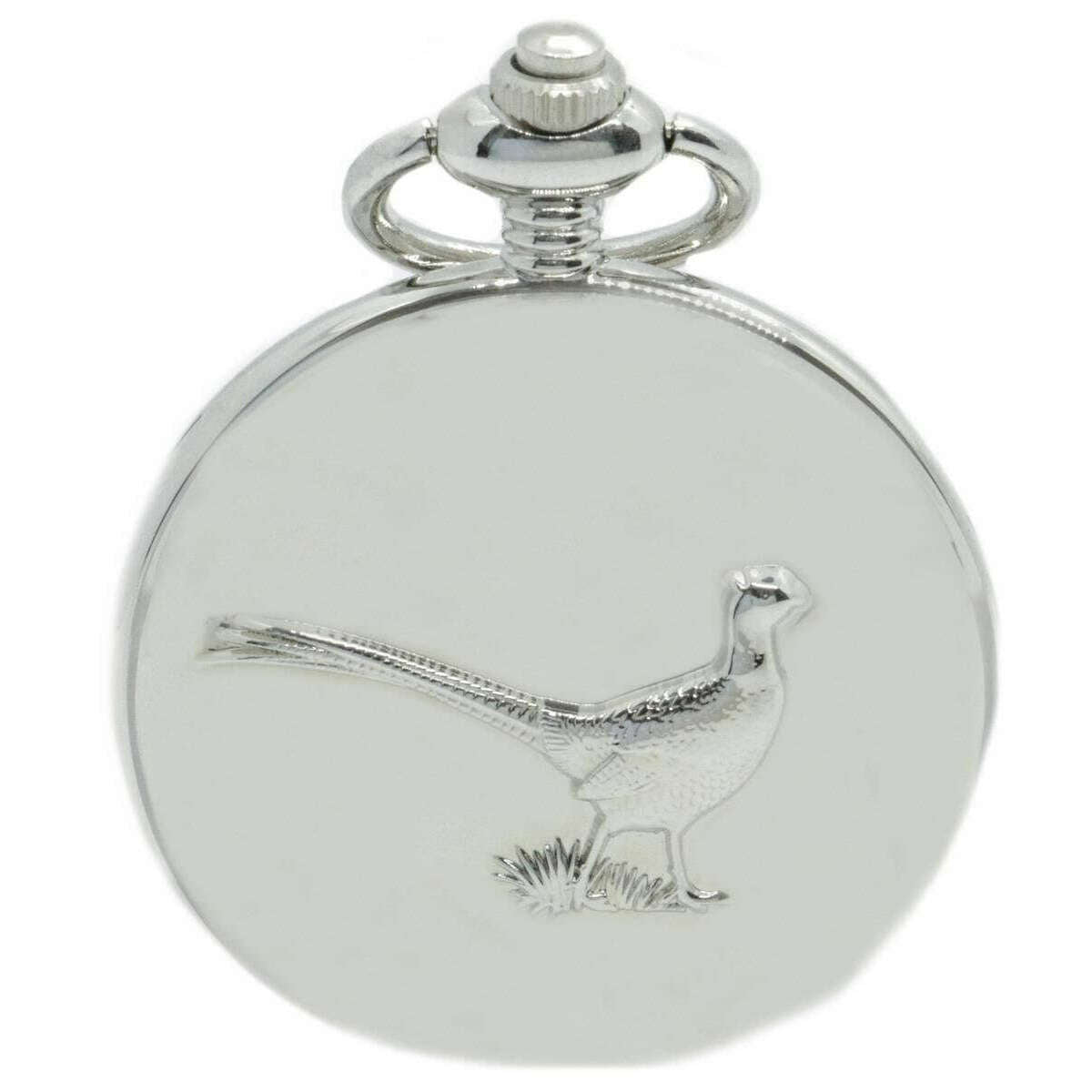 David Aster Pheasant Quartz Quartz Full Hunter Pocket Watch - Silver / White