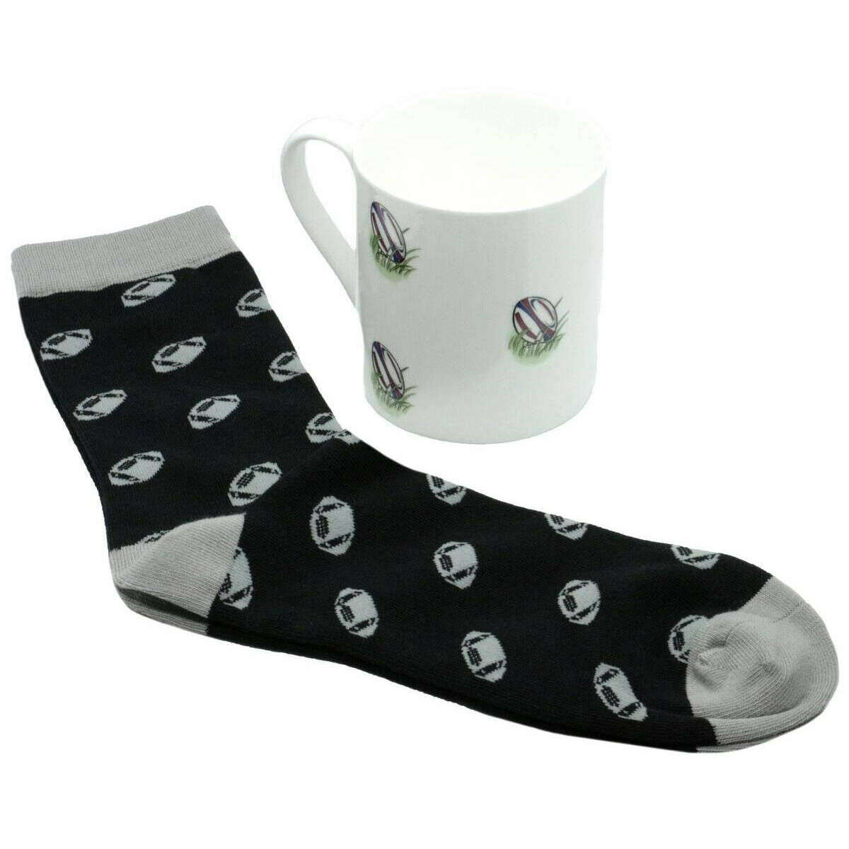 David Aster Ensemble Tasse et Chaussettes Ballon de Rugby - Blanc