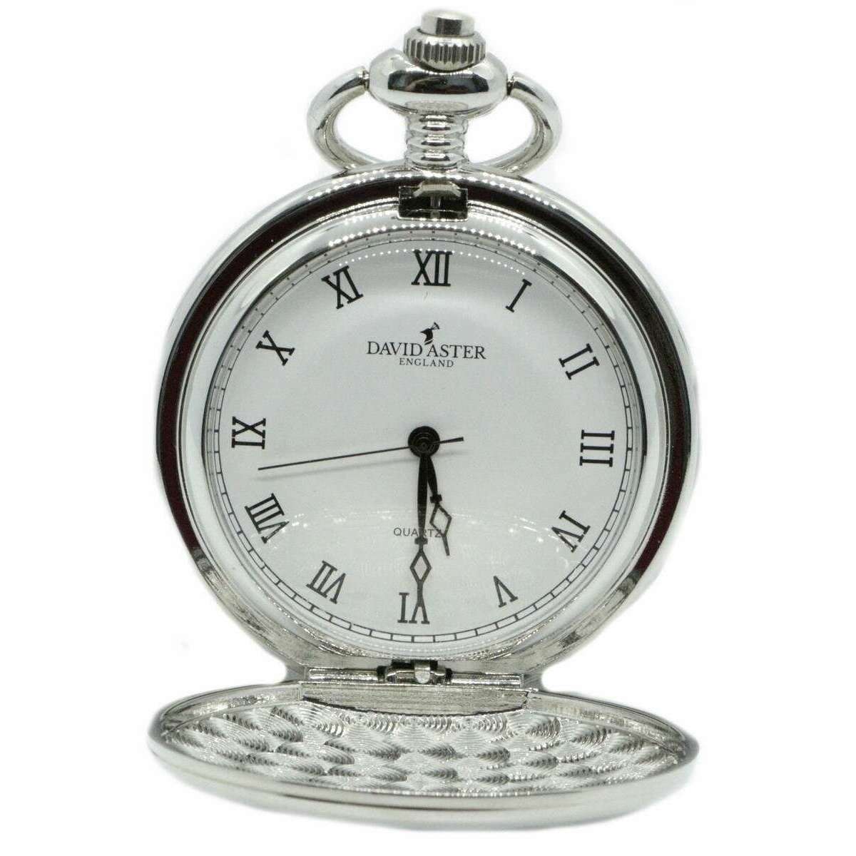 David Aster Spitfire Quartz Full Hunter Hunter Hunter Pocket Watch - Silver / White