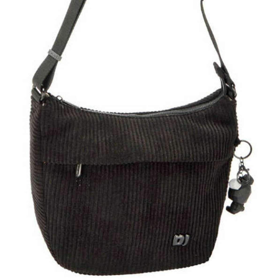 • Sangle réglable, poche avant zippée, fermeture éclair interne et poches ouvertes, fermeture zippée sur le dessus, breloque latérale, marque DJ.