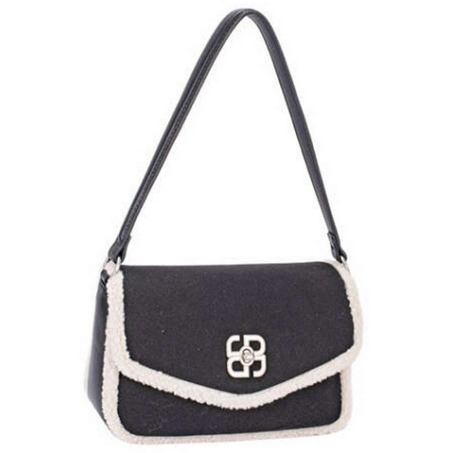 Sac porté épaule à rabat en fausse peau de mouton David Jones - Noir