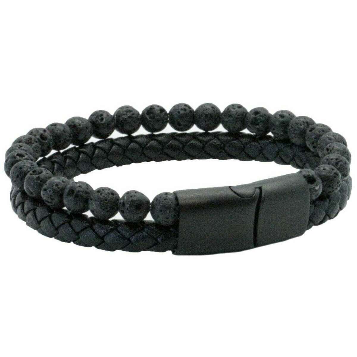 Bracelet en perles et cuir David Van Hagen - Noir