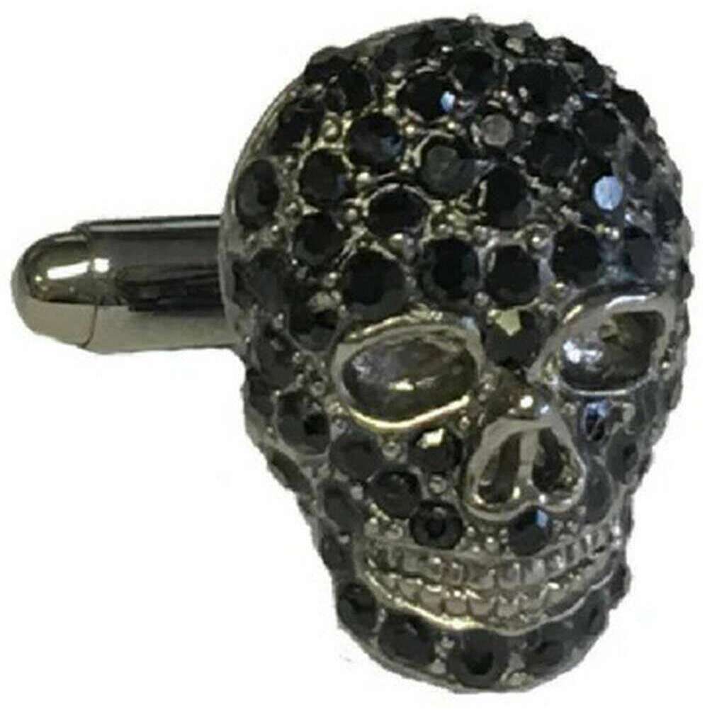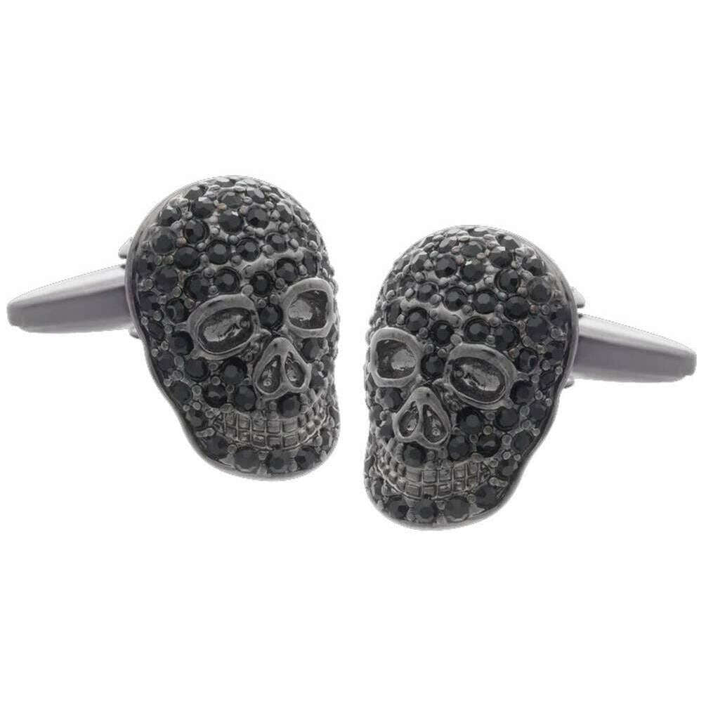 Boutons de manchette tête de mort en cristal David Van Hagen - Noir/Gris