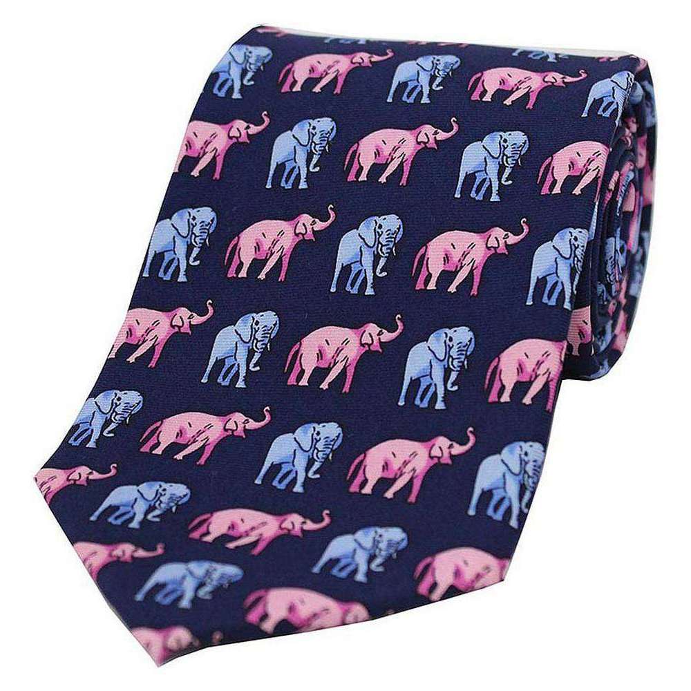 Fabriqué superbement à 100% de la meilleure soie, cette cravate classique de David Van Hagen est une pièce de luxe, parfaite pour tout gentleman élégant qui cherche à ajouter une touche de bon goût à sa tenue. Conçu dans le cadre de la gamme country, cette cravate glorieuse présente de magnifiques éléphants qui ont été imprimés dans un motif répétitif qui alterne d'un front en vue suivi d'une vue latérale de ce merveilleux animal. Se démarquer son élégant fond de marine, il est certain de faire une impression en faisant un must pour votre collection.