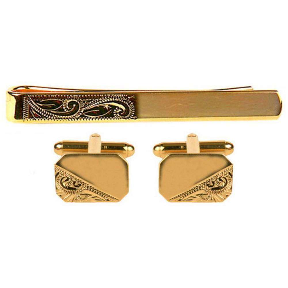 David van Hagen a gravé des boutons de manchette et un ensemble de diapositives de cravate - or