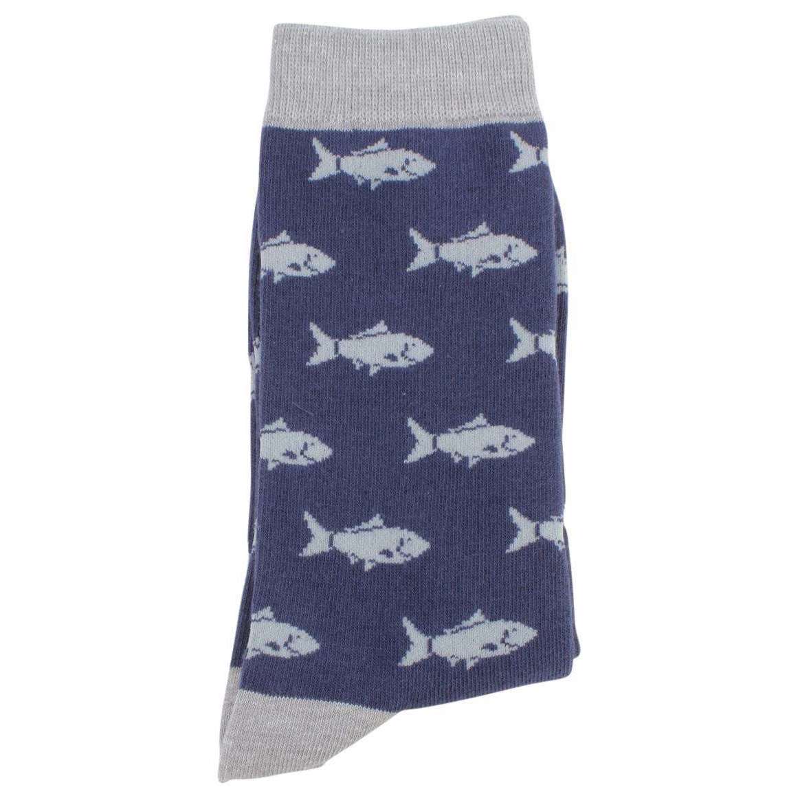 Ces chaussettes de poisson masculines ont été fabriquées à 80% de coton peigné, 13% en nylon et 7% élastique, figurant dans une couleur bleue et proviennent de la marque David van Hagen. De plus, les chaussettes bleues / grises sont conçues dans un motif unique, toutes les chaussettes sont complètes avec des étiquettes de chaussettes David van Hagen. Les chaussettes à poissons de David Van Hagen - Blue / Grey sont idéales pour toute occasion ayant été conçue à un niveau fin pour assurer le confort et la durabilité. Ils présentent une conception de guérison et des orteils contrastées avec un modèle de nouveauté garantissant qu'ils feront une impression.