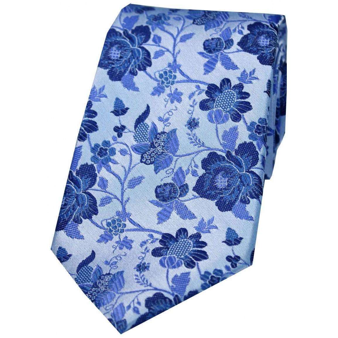 David van Hagen Tie à la soie à motifs floraux - Bleu ciel