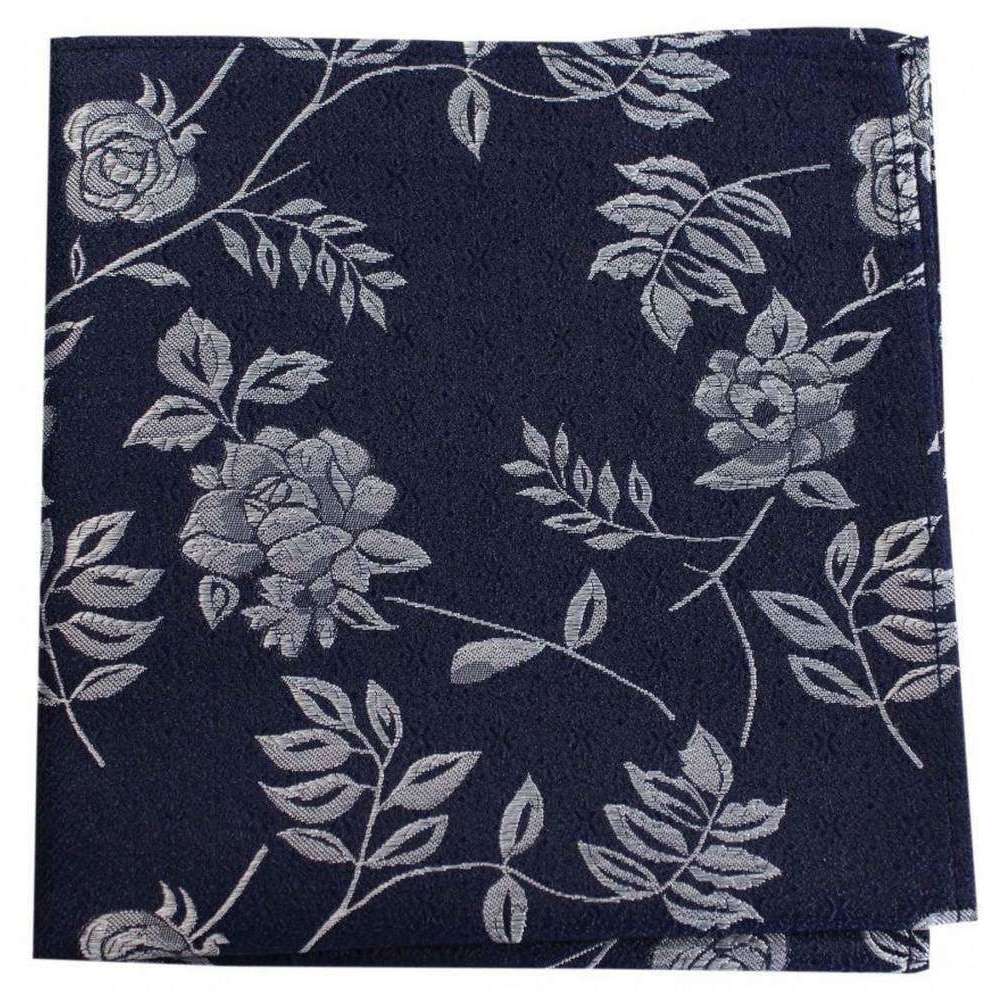 David van Hagen Flower and Leaf Luxury Silk Pocket Square - Marine / Gray