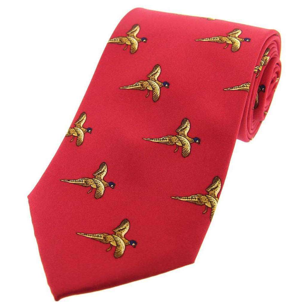 David van Hagen Flying Pheasant Country Silk Tie - Red