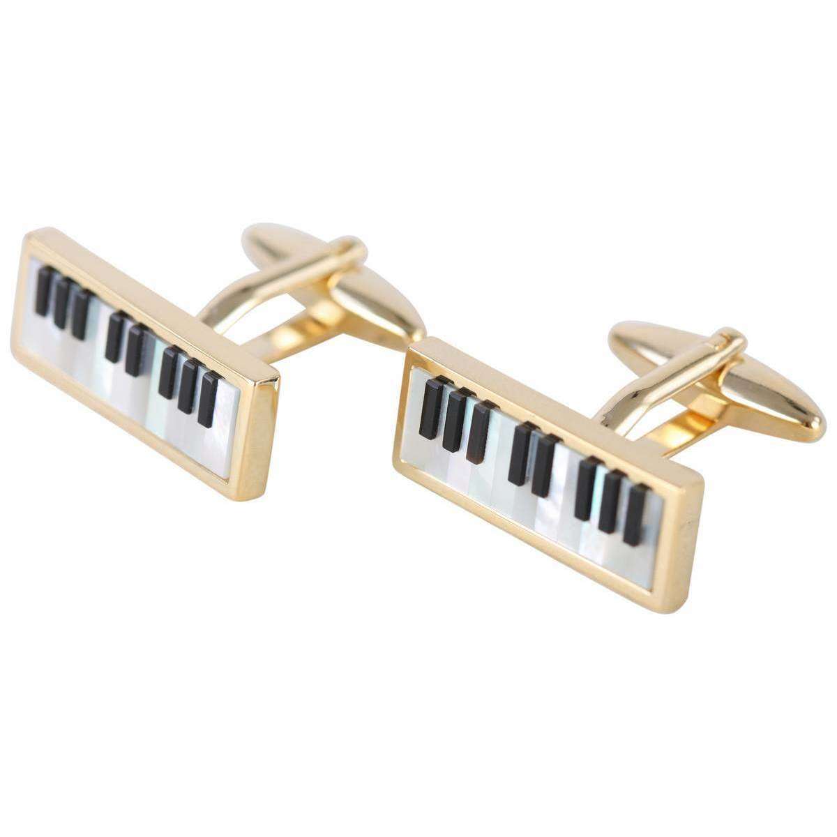Organisé et de bon goût, ces boutons de manchette de clavier David Van Hagen ajouteront une touche de plaisir à n'importe quelle tenue. Les ivoires de piano sont fabriqués à partir de belle mère de perles et les ebonies sont fabriquées à partir d'onyx audacieux, entouré de métal plaqué or. Emballés dans une boîte de présentation de luxe David Van Hagen, ces boutons de manchette font un cadeau réfléchi.