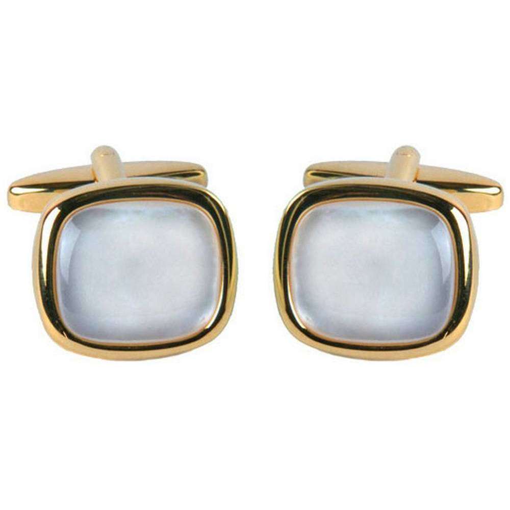 Ces boutons de manchette David Van Hagen conçus classiques ajouteront une touche de style et de sophistication à n'importe quelle chemise. Le soutien de chaque bouilloire a été fabriqué dans du métal plaqué or, tandis que les centres ont chacun été incrustés avec une véritable mère de perle. Emballés dans une boîte de présentation de David Van Hagen, ces boutons de manchette feraient le cadeau parfait.