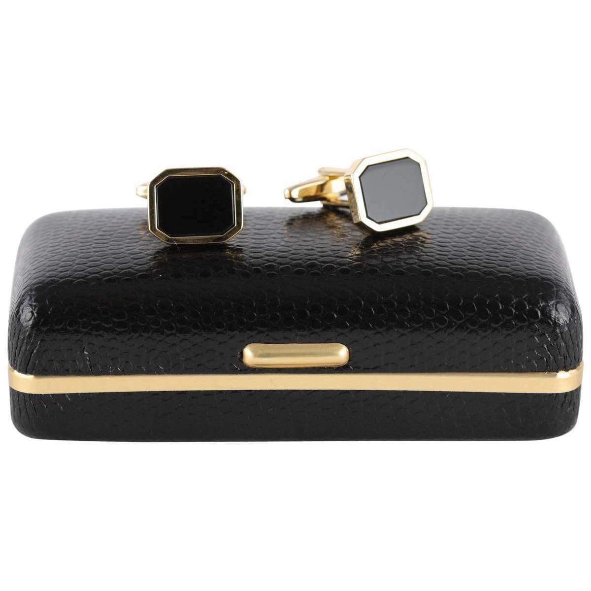 Classiquement et contemporain, ces boutons de manchette de David Van Hagen sont une merveilleuse touche finale pour n'importe quelle tenue. Chaque bouchon de manchette octogonal présente un support en métal plaqué or, tandis que l'incrustation est facette avec de beaux onyx. À venir dans une boîte de présentation de David Van Hagen, ces boutons de manchette sont le cadeau idéal.