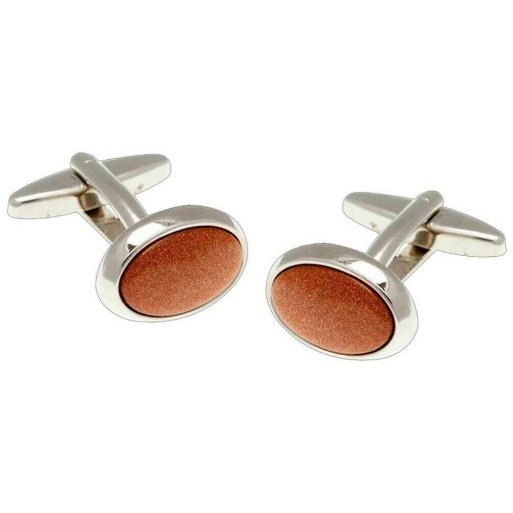 • Cabochon Semi-Precious Brown Goldstone , Bords polis , Bascule de bouton de manchette standard