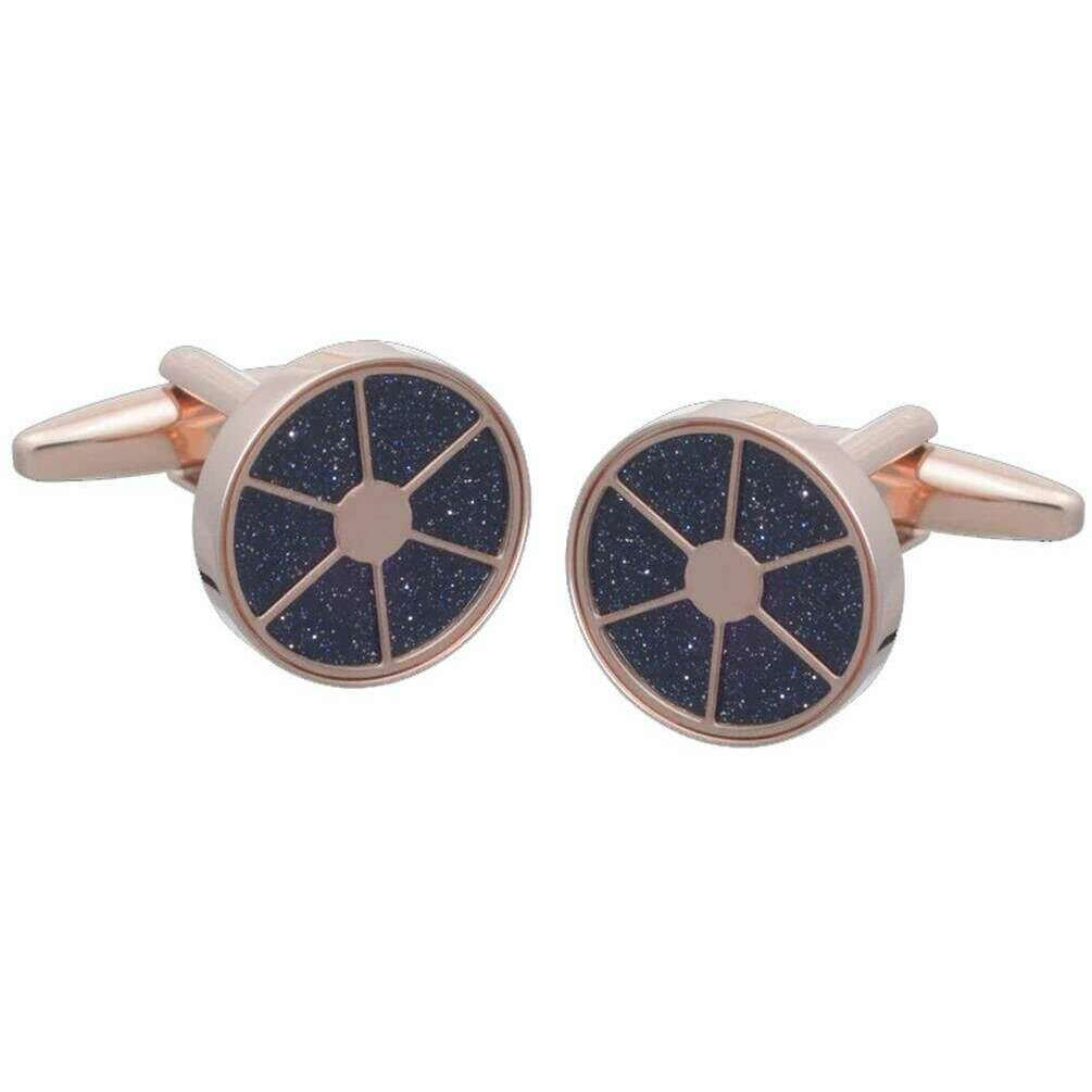 Boutons de manchette segment David Van Hagen Goldstone - Bleu/Or rose