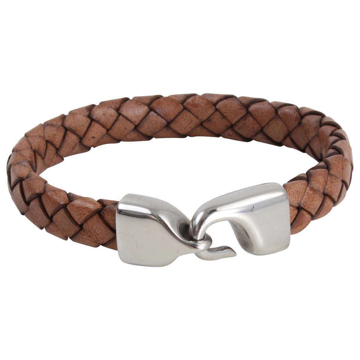 Ce bracelet tissé en fermoir à crochet pour les hommes est façonné par la marque David van Hagen de couleur marron et est fabriqué en cuir et en acier inoxydable. Tous les bracelets sont livrés avec David Van Hagen Tags. Le bracelet tissé du fermoir David Van Hagen - Brown / Silver dégage un effet simple mais impeccable. Son design audacieux vous fera vous démarquer parfaitement de la foule. Ce bracelet est fixé avec un fermoir à crochet pour une façon unique de le porter. Un must have pour toute collection d'hommes.