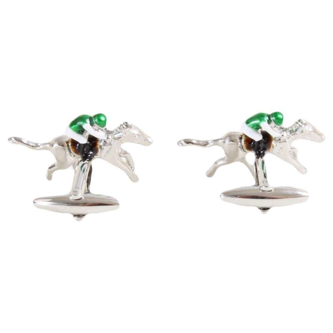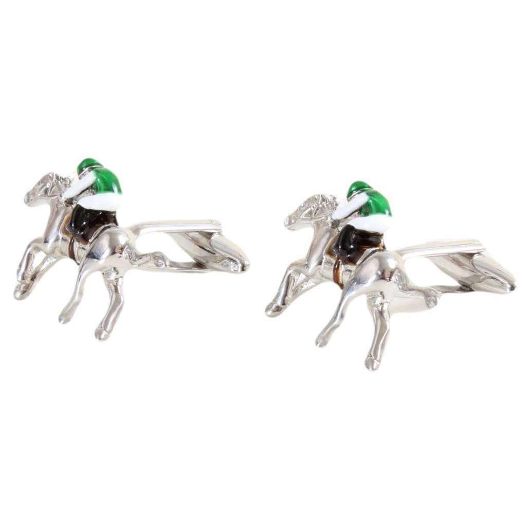 David Van Hagen Horse Horse Racing boutons de manchette - Silver / Green