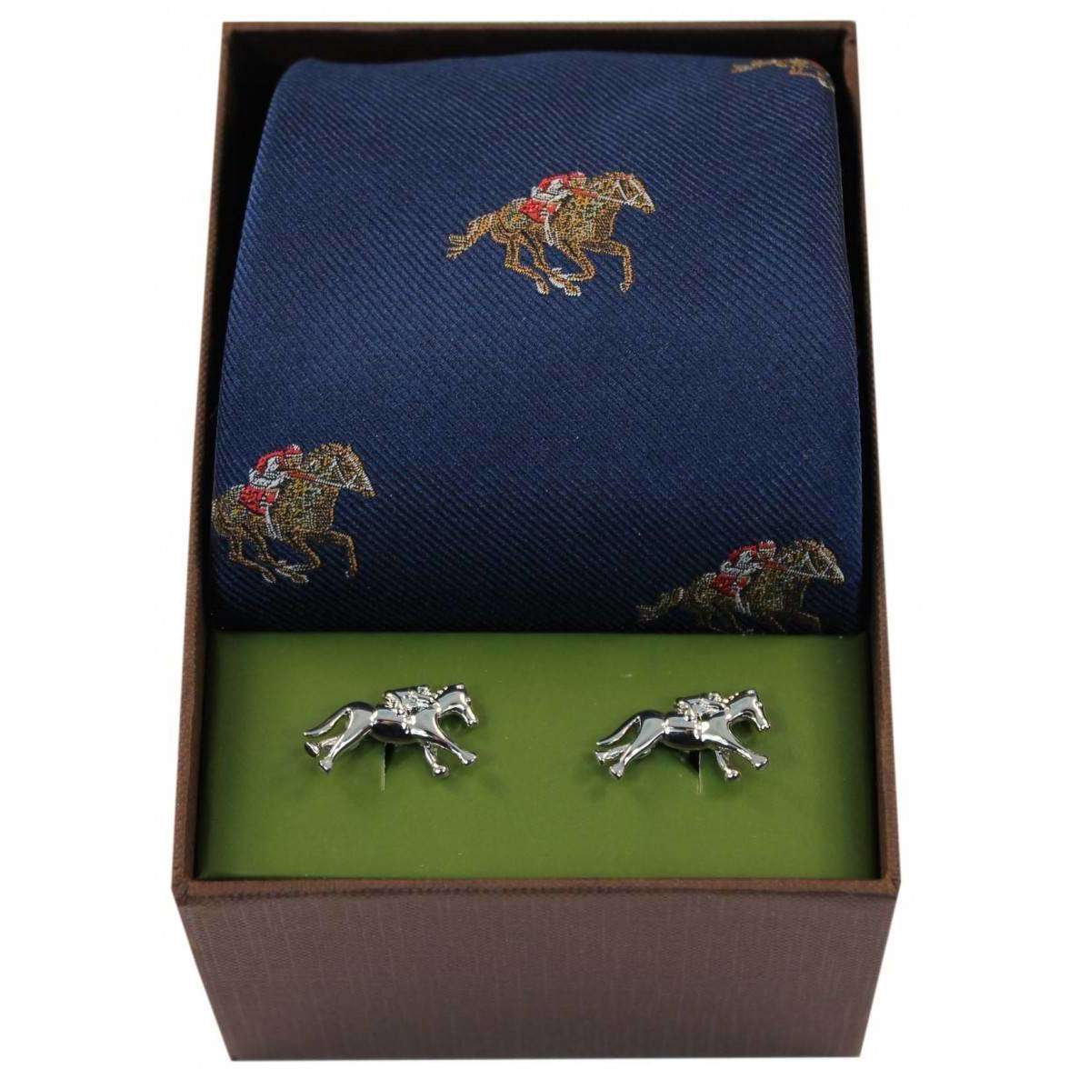 David van Hagen Horse Racing Tie and Cuffers set - Navy