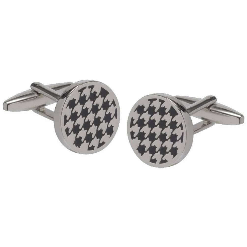 Boutons de manchette pied-de-poule David Van Hagen - Noir/Argent