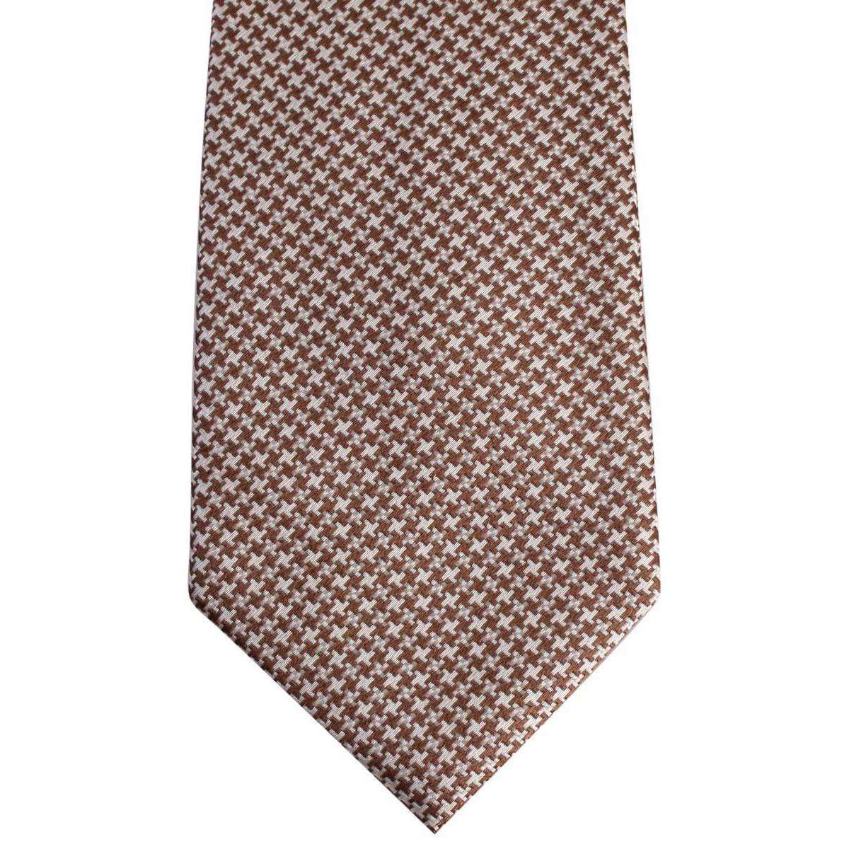Wonderfully designed with a classic houndstooth pattern in brown and white, this stunning David Van Hagen silk tie has been superbly handcrafted from luxurious silk to the utmost standards, producing an astounding finish of the highest quality with fine detailing. Designed with a widest point of 8cm, this is a classic tie that is certain to make an impression. Add pizzazz to your formal attire with this eye-catching houndstooth tie by David Van Hagen.