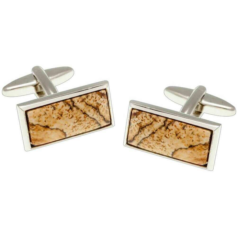 • Pierre de jaspe semi-précieuse cabochon, bords polis forts, bascule de bouton de manchette standard