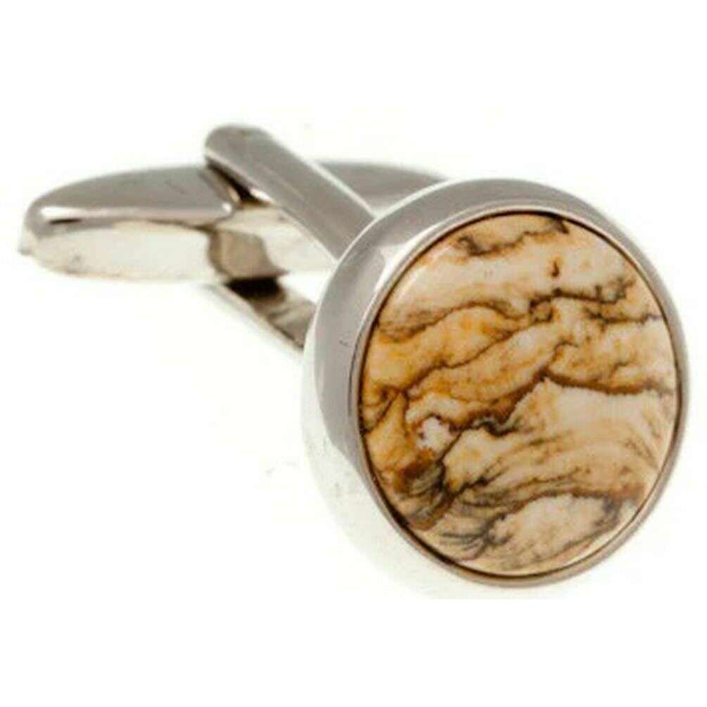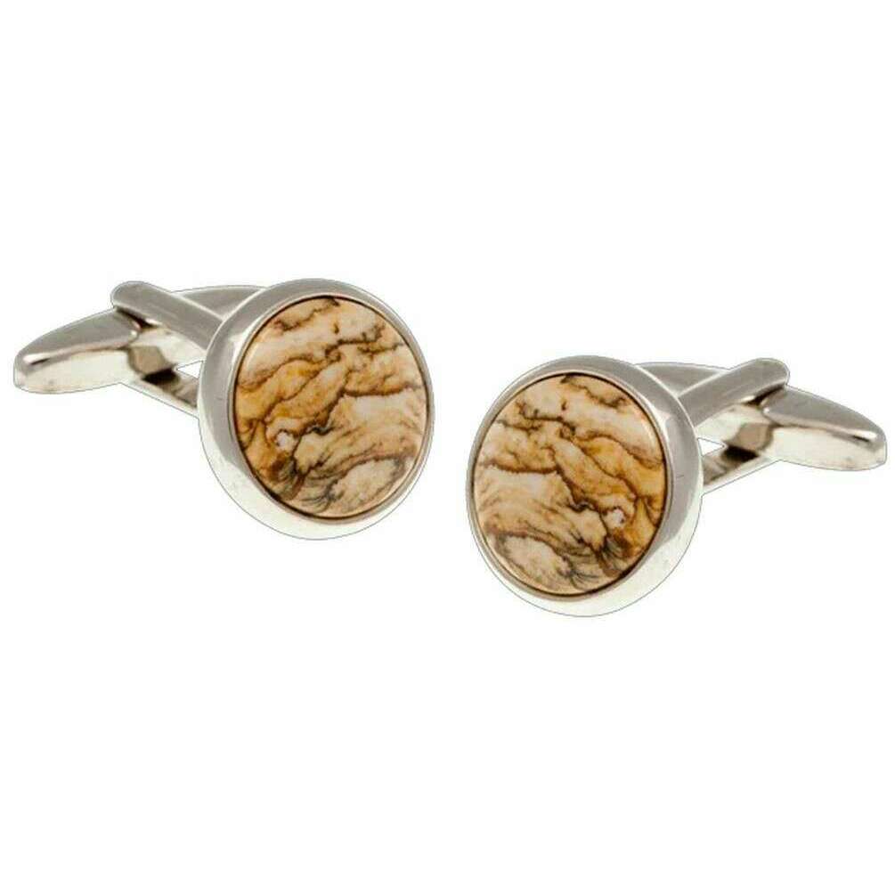 Boutons de manchette ronds David Van Hagen Jasper - Beige/Argent