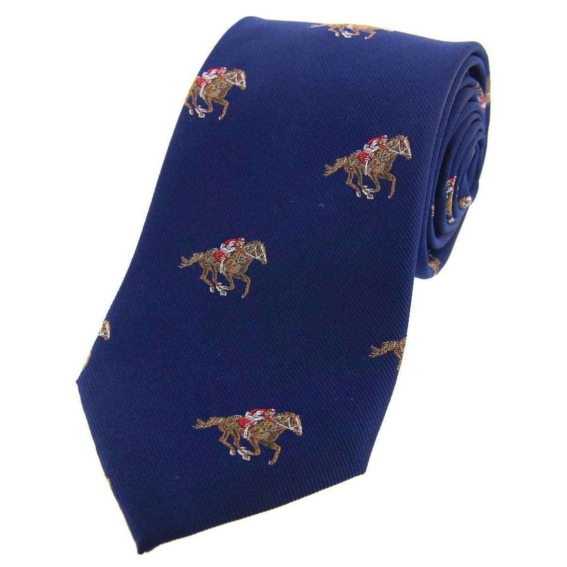 David Van Hagen Jockeys et chevaux Tie à la soie country tissé - Marine