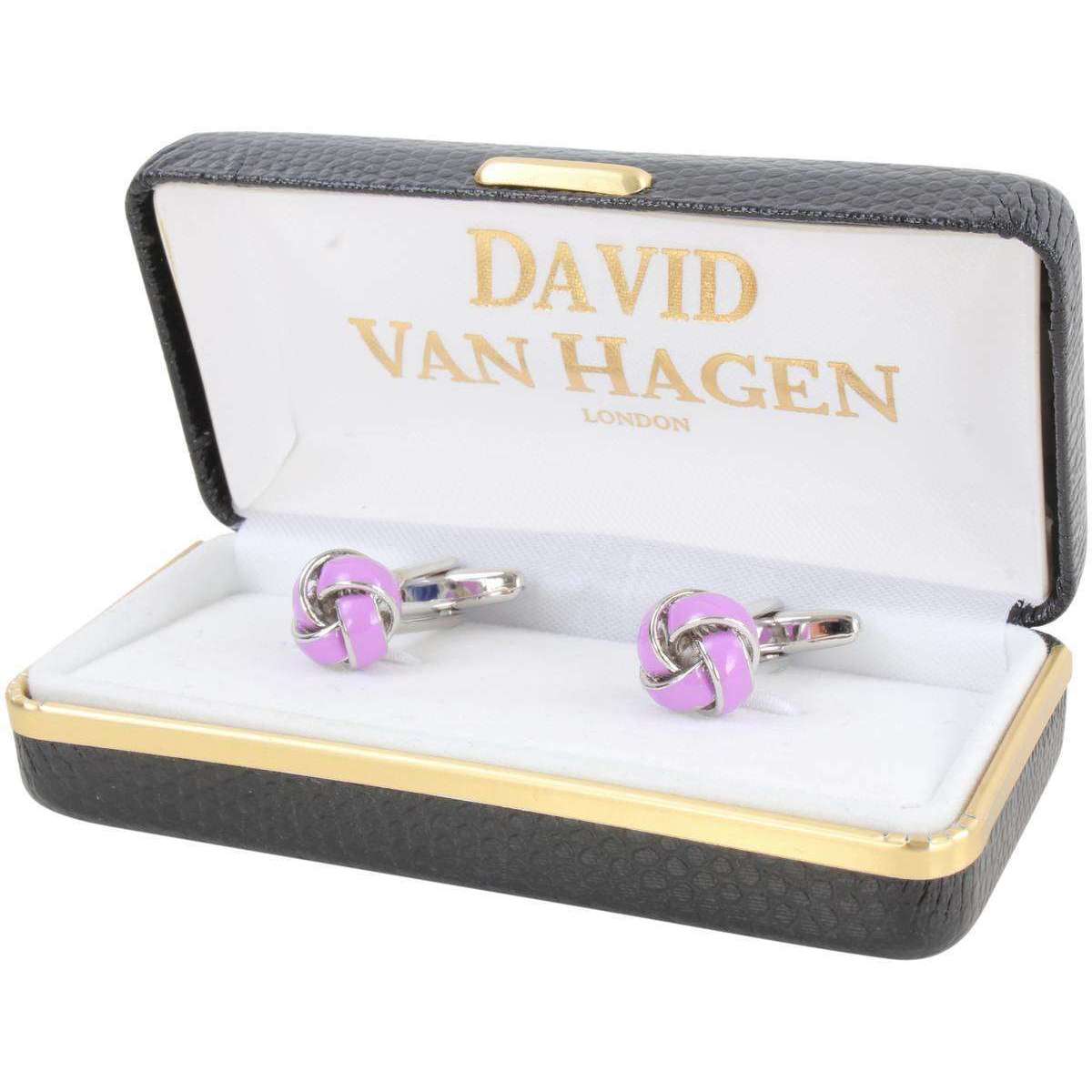 Ces boutons de manchette de nœuds pour hommes sont façonnés par la marque David van Hagen de couleur violette et sont fabriqués en laiton avec une plaque de rhodium. Tous les boutons de manchette sont complets dans une boîte de présentation de David Van Hagen. Les boutons de manchette de nœud David Van Hagen - Purple apporteront certainement une touche colorée à votre tenue. Son merveilleux design de nœud sera superbe sur votre manchette et ayant été équipé d'un dos pivotant en T, il est sans effort de glisser dans votre manchette de chemise.