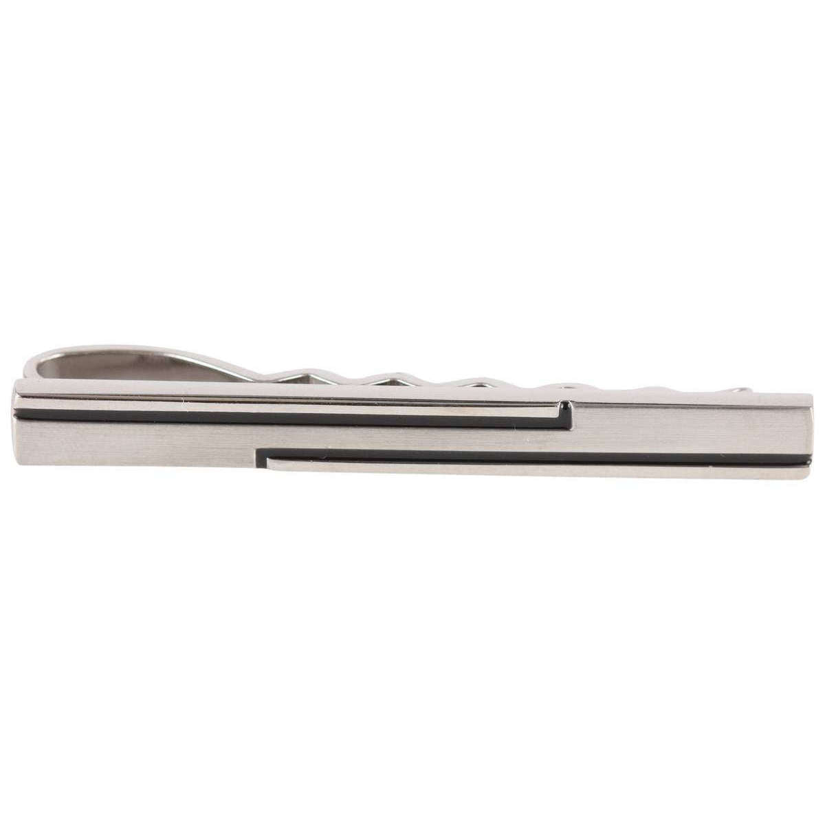 David van Hagen Line Detail Rhodium Tie Slide - Silver / Black
