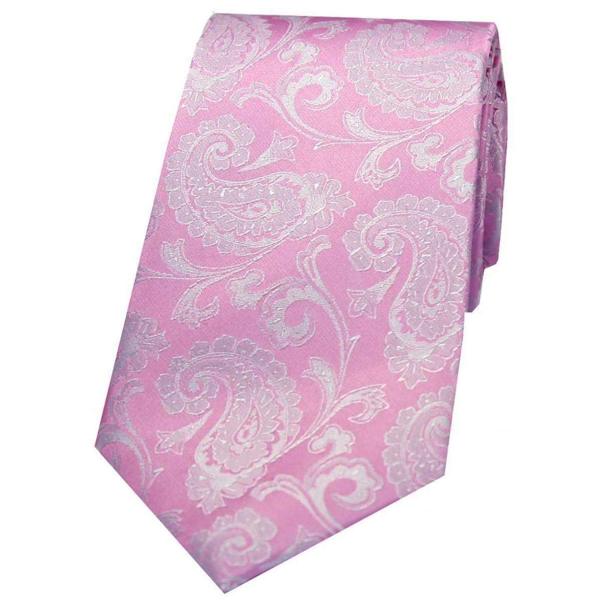 David van Hagen Luxury Paisley Silk Tie - Coton Candy Pink