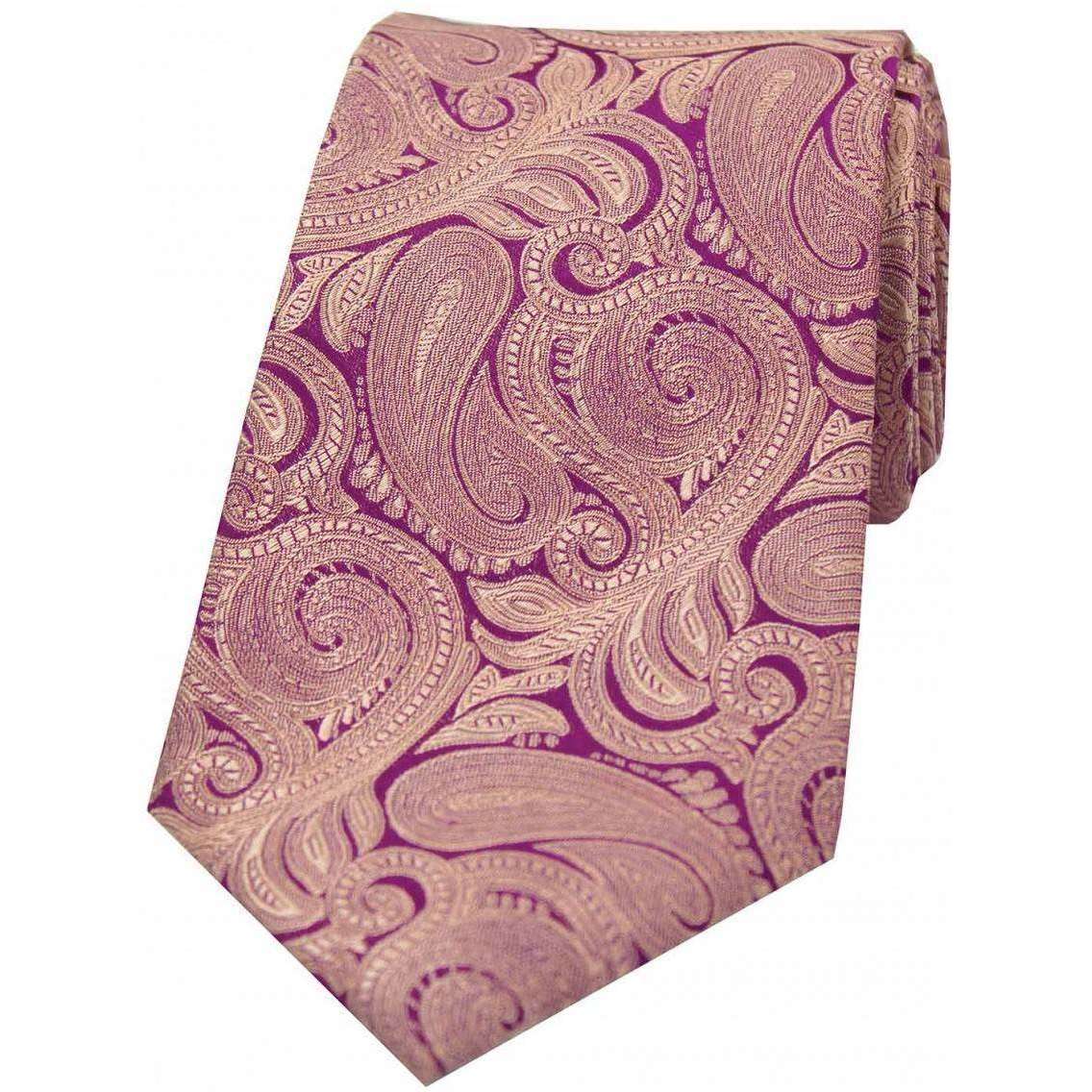 David van Hagen Luxury Paisley Silk Tie - Purple / Fuchsia
