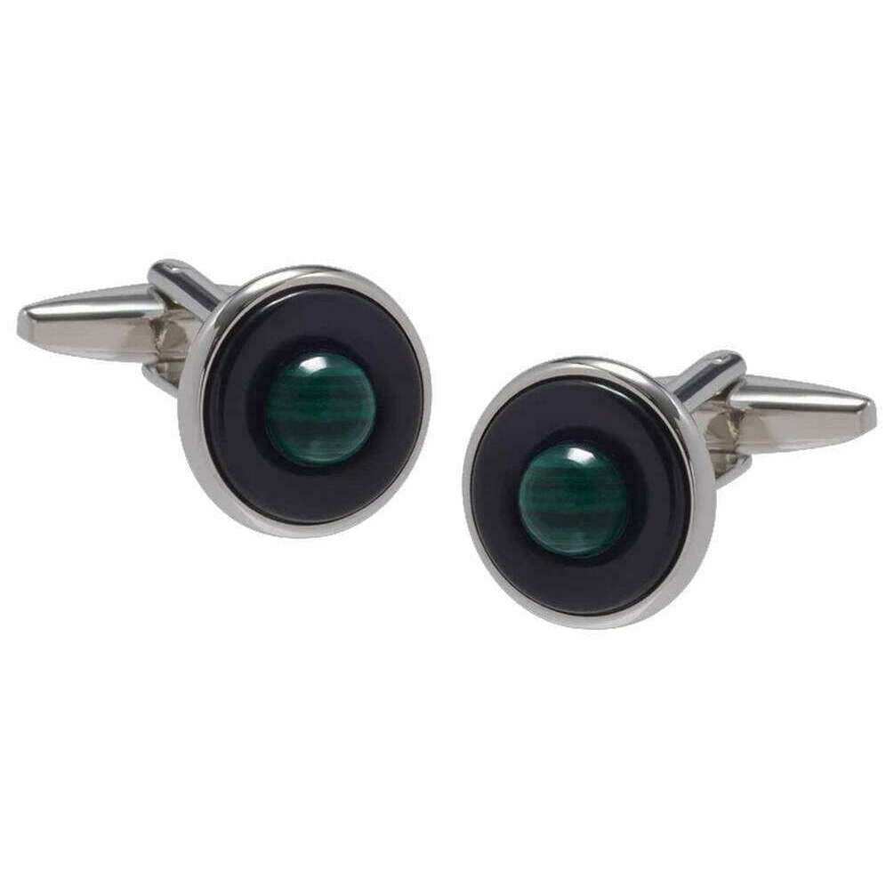 Boutons de manchette David Van Hagen Malachite Saturn Sphere - Vert/Noir/Argent