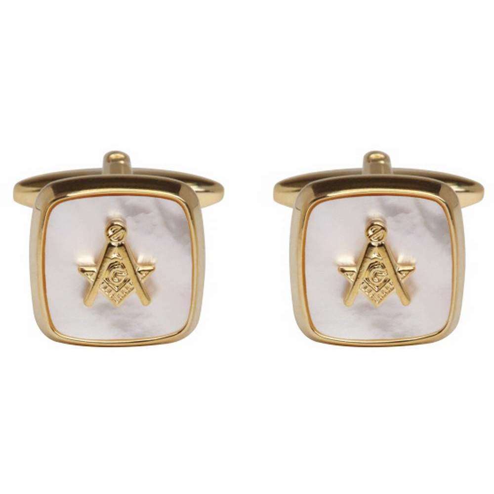 Parfait pour un look de style et de sophistication, ces luxueux boutons de manchette maçonniques de David Van Hagen sont garantis d'ajouter une classe à votre tenue formelle. Doté du modèle maçonnique frappant avec le ˜g dans le centre établi sur la mère de perle semi-précieuse, ces boutons de manchette ont été fabriqués à partir de la plus haute qualité de la plaque d'or. Complète dans une boîte de présentation de David Van Hagen, ces glorieux bout-couiers maçonniques feraient un choix exceptionnel de cadeau pour un homme d'élégance.