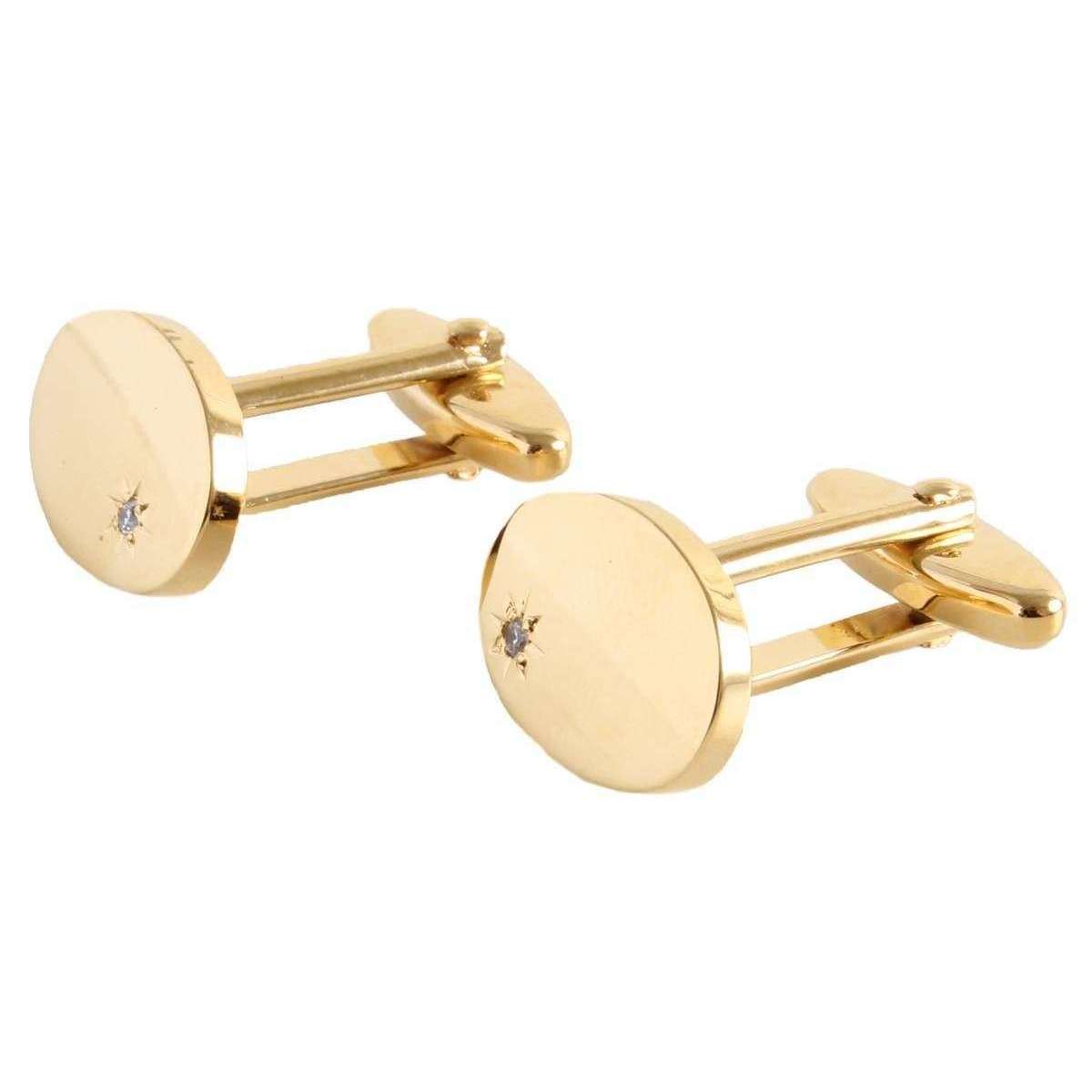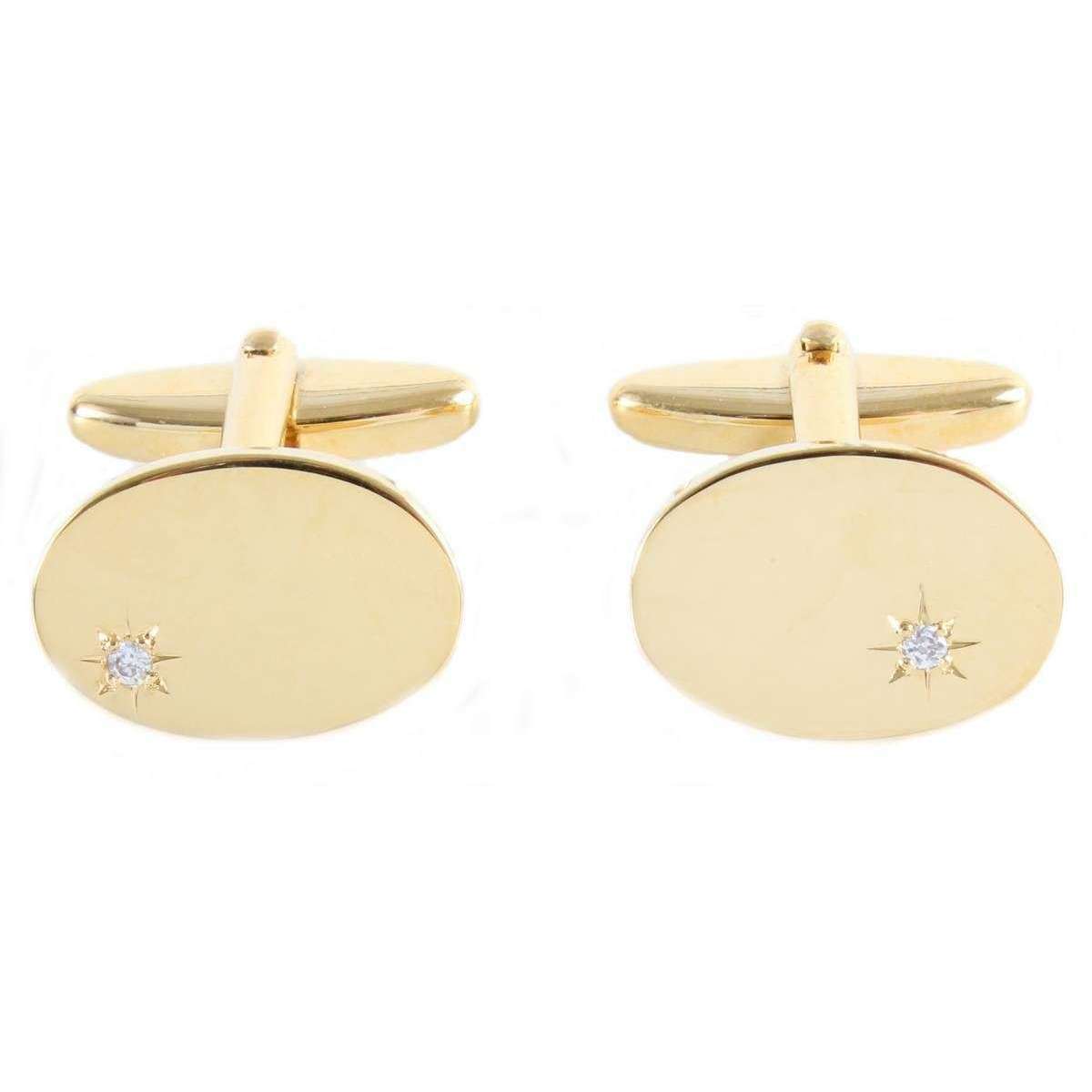 Ces boutons de manchette ovales de zircone cubique pour hommes par la marque David van Hagen sont fabriqués à partir de métal de base et de plaque d'or et sont présentés en or. Tous les boutons de manchette sont complets dans une boîte de présentation de David Van Hagen. Les boutons de manchette David Van Hagen Oval Cubic Zirconia - Gold ferait un nouvel ajout étonnant à la collection de tout homme. Ces boutons de manchette ont été conçus pour s'adapter au goût de n'importe quel homme et à n'importe quelle tenue pour toute occasion. Pouvant ajouter et retirer facilement en raison de son mécanisme de barre T pivotant, ils sont indispensables à ajouter à votre collection.