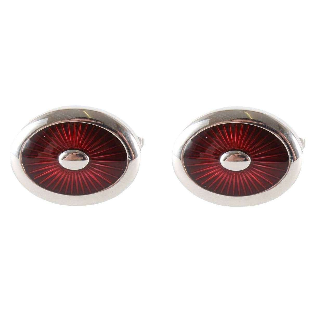 David van Hagen Oval Ematel Cuffleks - Red / Silver