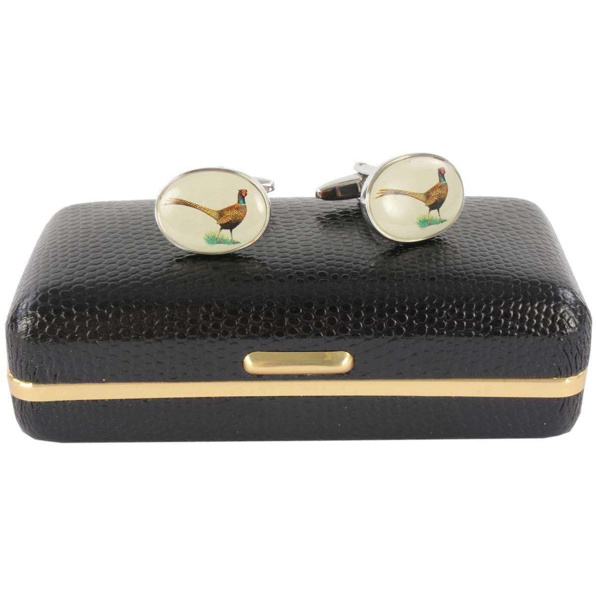 David van Hagen Pheasant Cuffinks - Crème / Silver