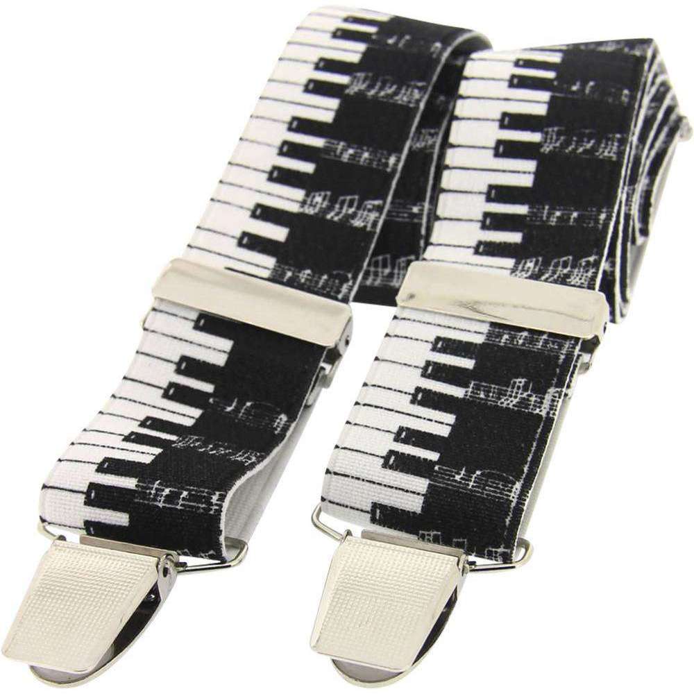 Ces accolades de piano masculin par la marque David van Hagen sont fabriquées à 100% d'élastique et sont présentées en noir. Il mesure 71 cm au plus court, 117 cm au plus longtemps. De plus, les accolades / bretelles noirs / blancs sont conçus selon un motif unique, tous les accolades / bretelles sont complétés dans une boîte de David Van Hagen. Les accolades de clés de piano David Van Hagen - Black / White sont l'accessoire idéal que chaque musicien doit posséder. Le design est vraiment magnifique, il s'agit d'un design répétitif continu avec des notes musicales sur le côté. Avoir 4 clips les rend faciles à ajouter et à retirer de votre tenue et à s'assurer qu'ils sont à l'aise avec des sangles élastiques et réglables. Une pièce confortable garantie de ne pas décevoir.