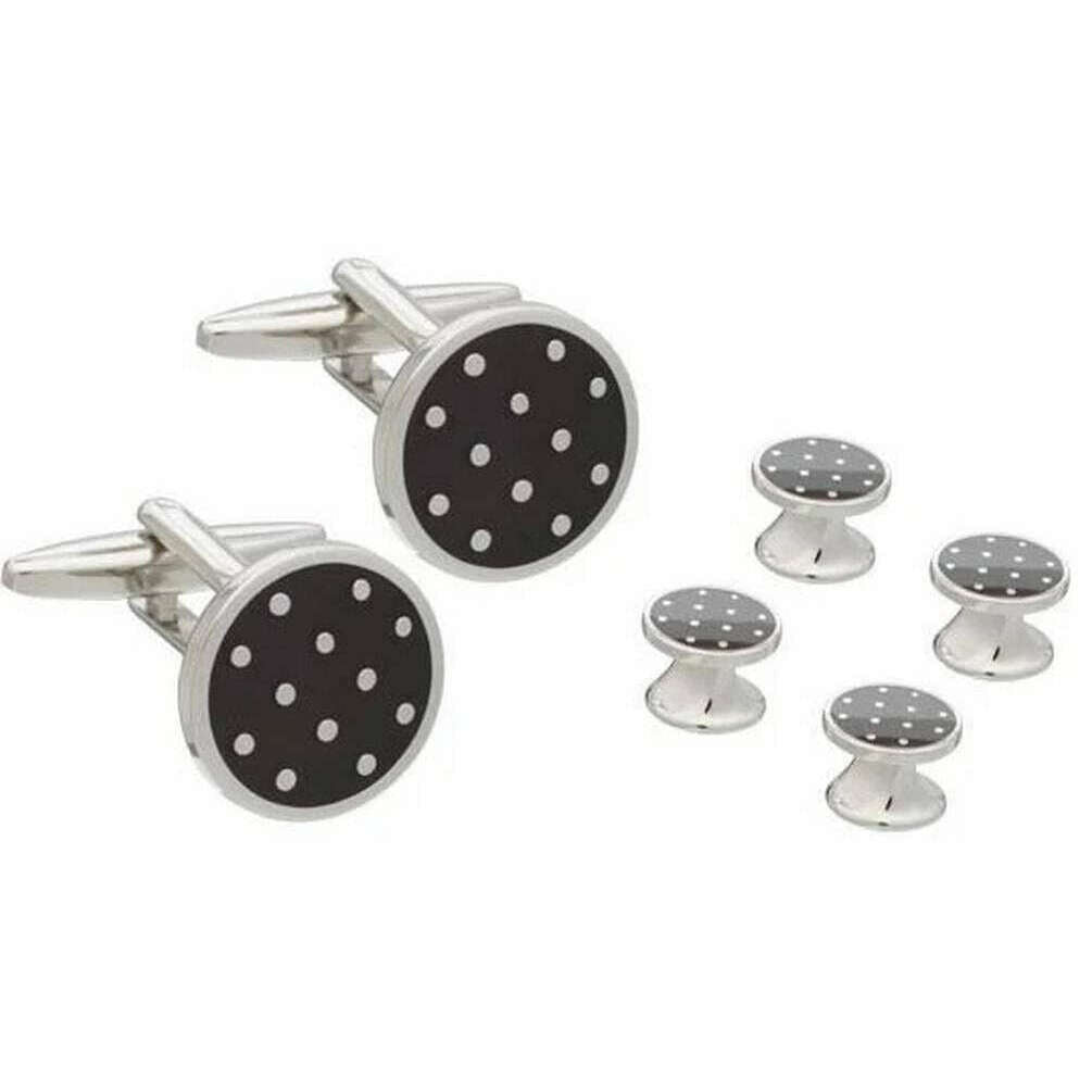 Ensemble de clous et boutons de manchette pour robe à pois David Van Hagen - Noir/Argent