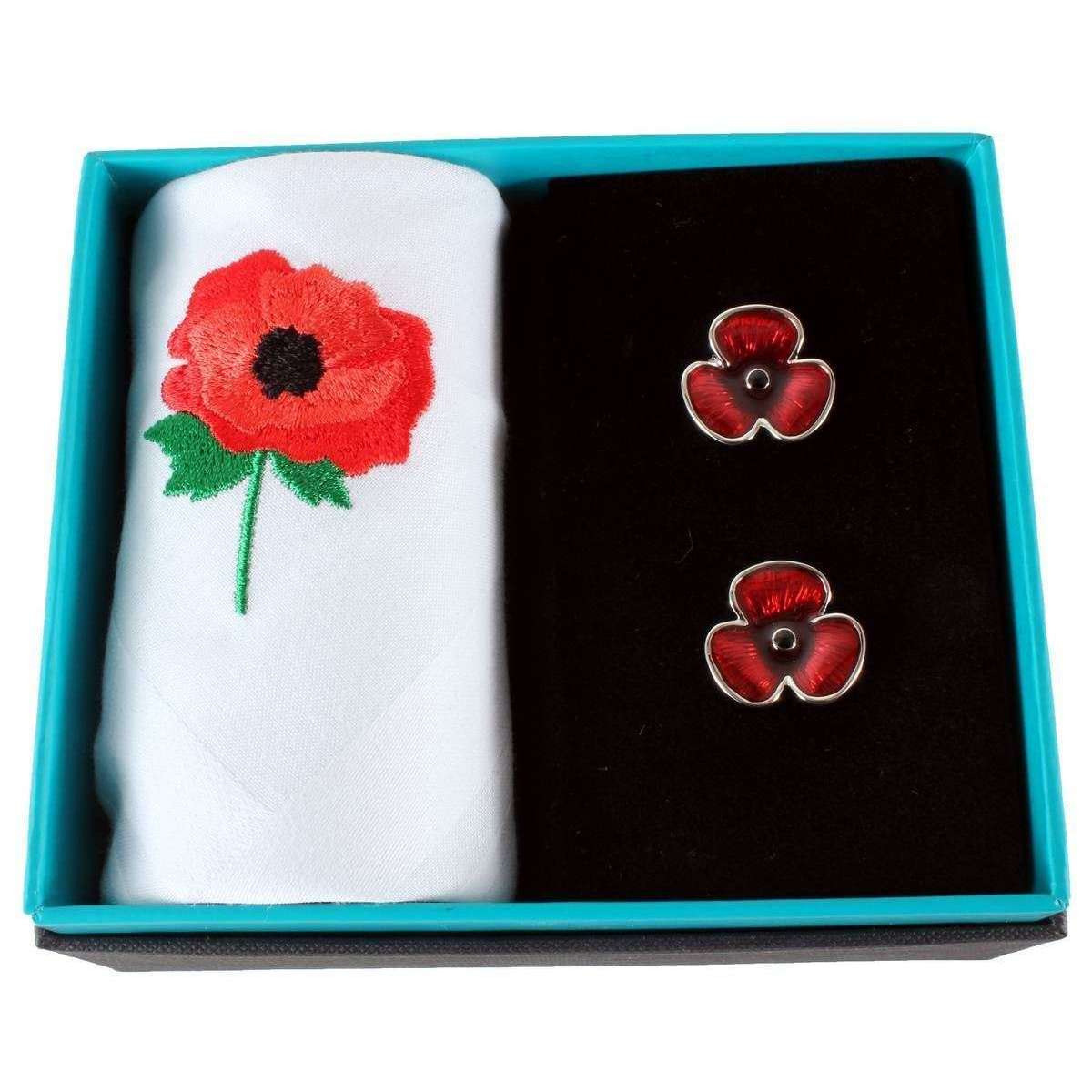 David Van Hagen Poppy Handkerchief and Cufflink Set - White/Red/Green