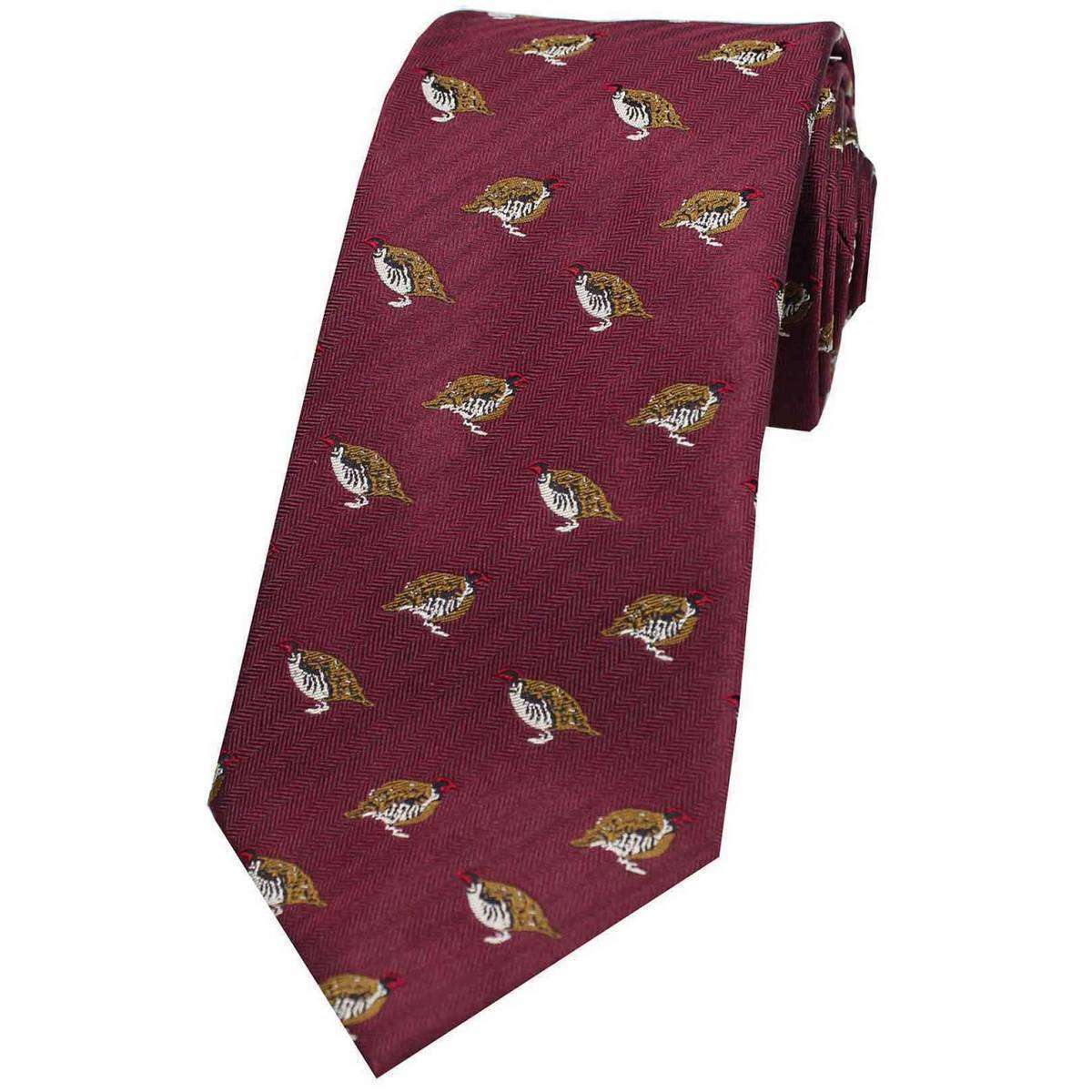 David van Hagen Redgged Partridge Herringbone Country Silk Tie - Vin