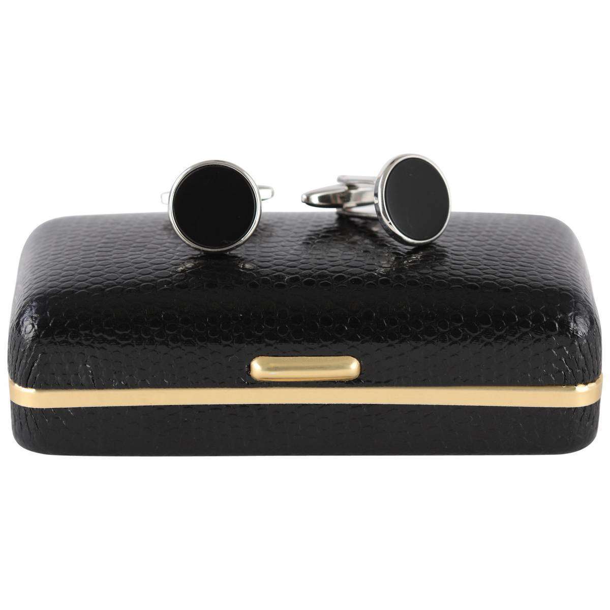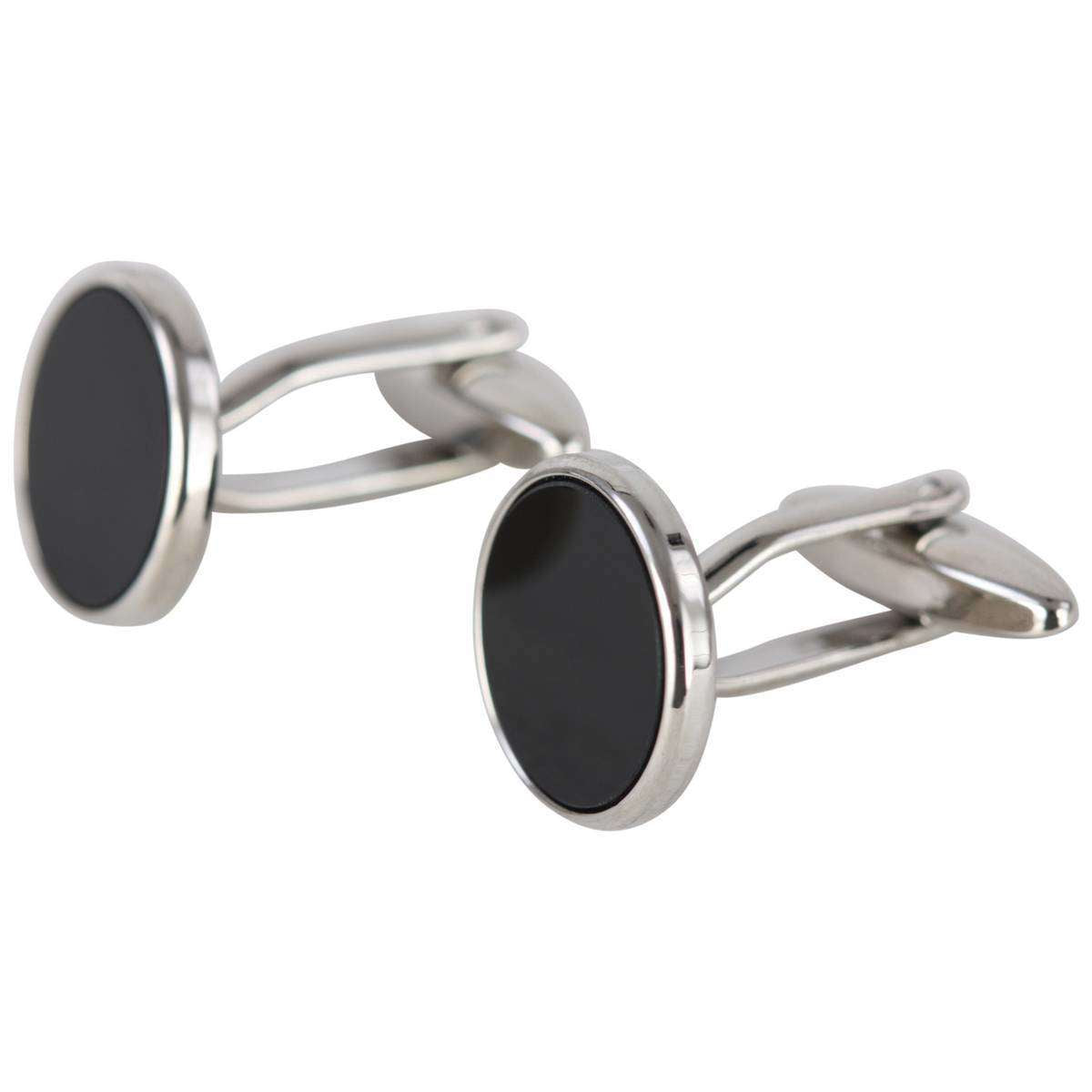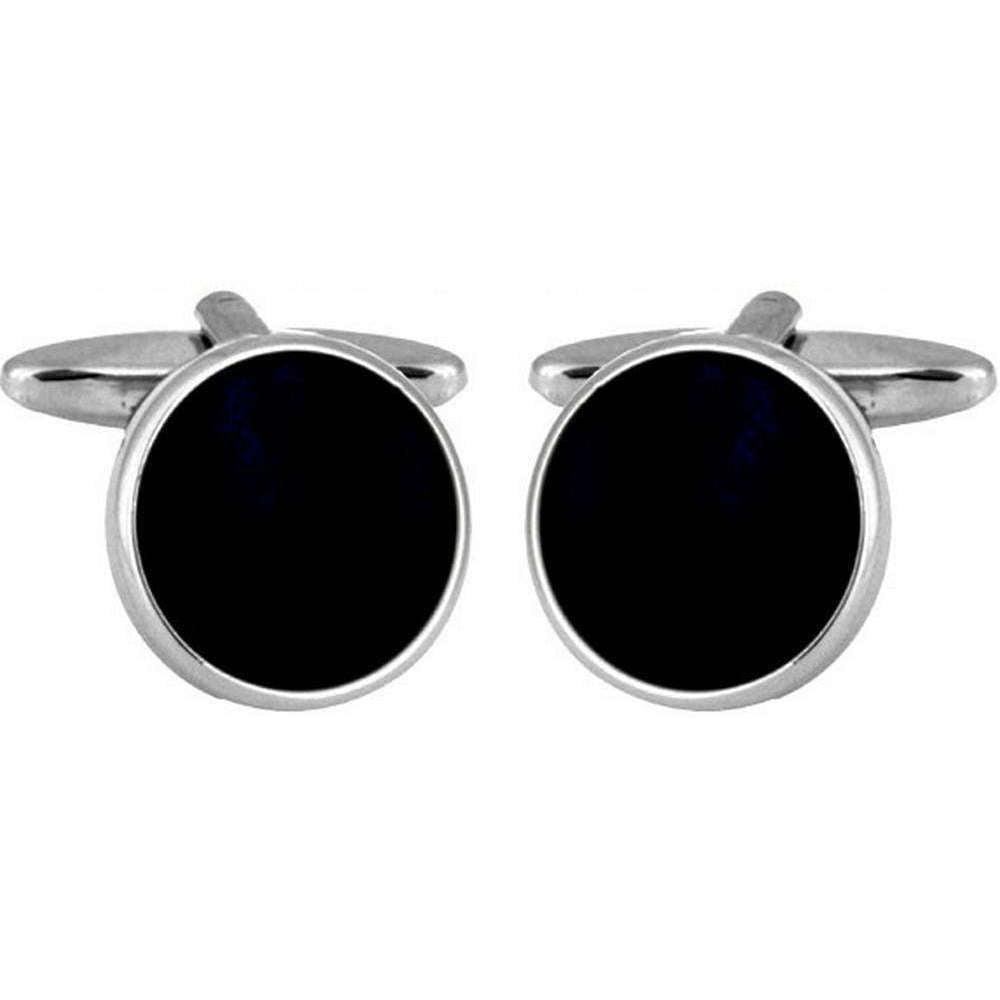 David van Hagen Rhodium plaqué Onyx Round Cuffinks - noir / argent