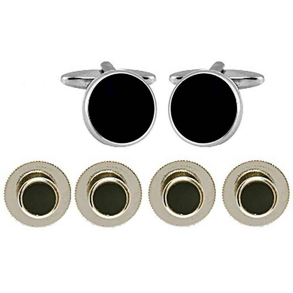 David Van Hagen Ensemble boutons de manchette ronds et clous de robe – Noir/argenté