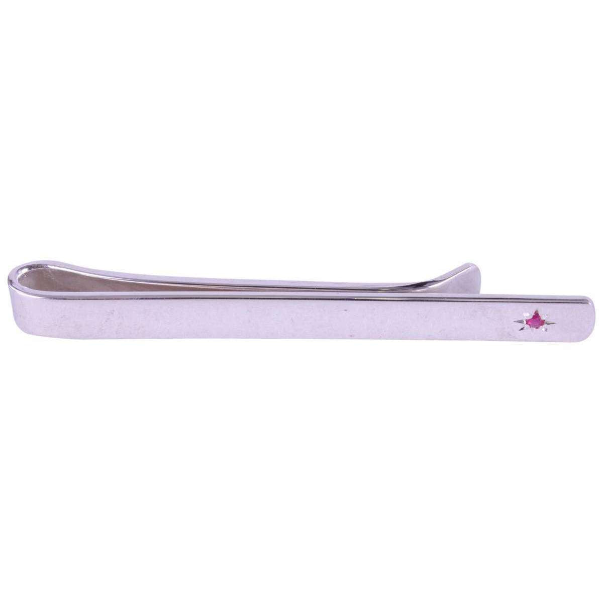David van Hagen Ruby Set Sterling Silver Tie Slide - Silver