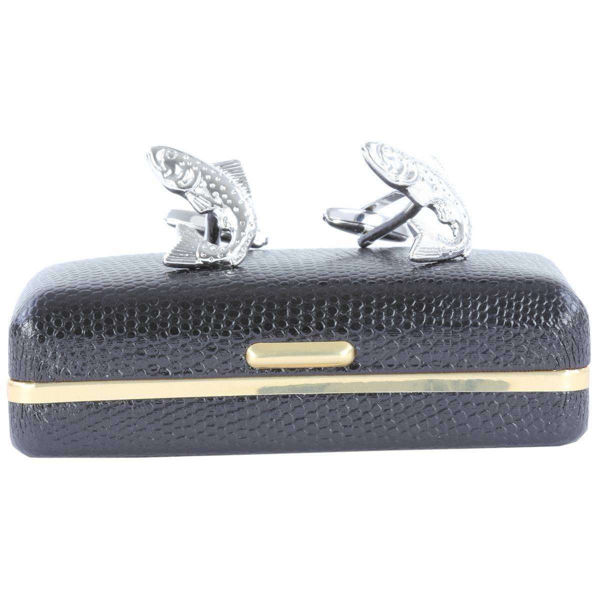 Étonnamment brillante, ces boutons de manchette de saumon de David van Hagen sont un superbe choix pour accessoiriser votre tenue formelle. Délicatement fabriqué en laiton et plaqué de rhodium, ils sont certainement une paire durable qui est parfaite pour toute collection Gentlemans. Leur dos pivotant en T garantit que vos poignets sont sécurisés pour ces occasions spéciales et le feront avec style. Ces superbes boutons de manchette sont complets dans une boîte de présentation de David Van Hagen, ce qui en fait un cadeau idéal.