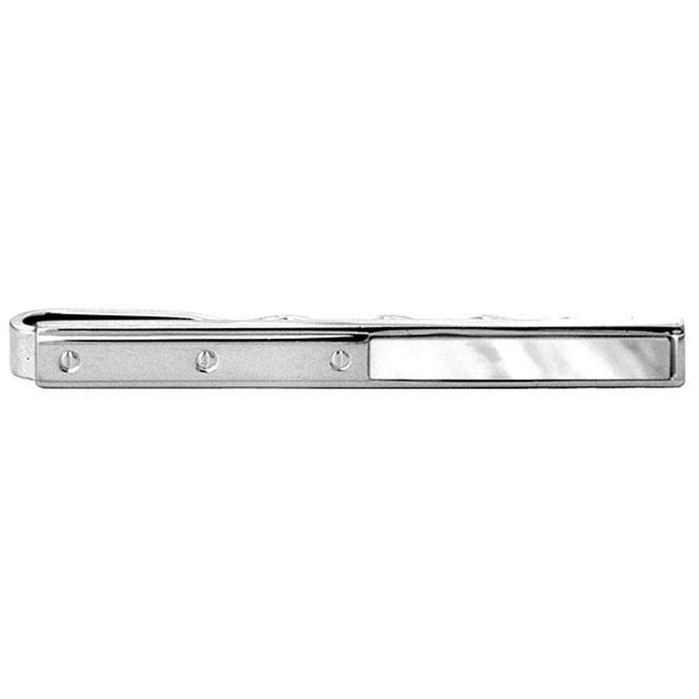 David van Hagen Screw Mother of Pearl Rhodium Tie Slide - Silver / White