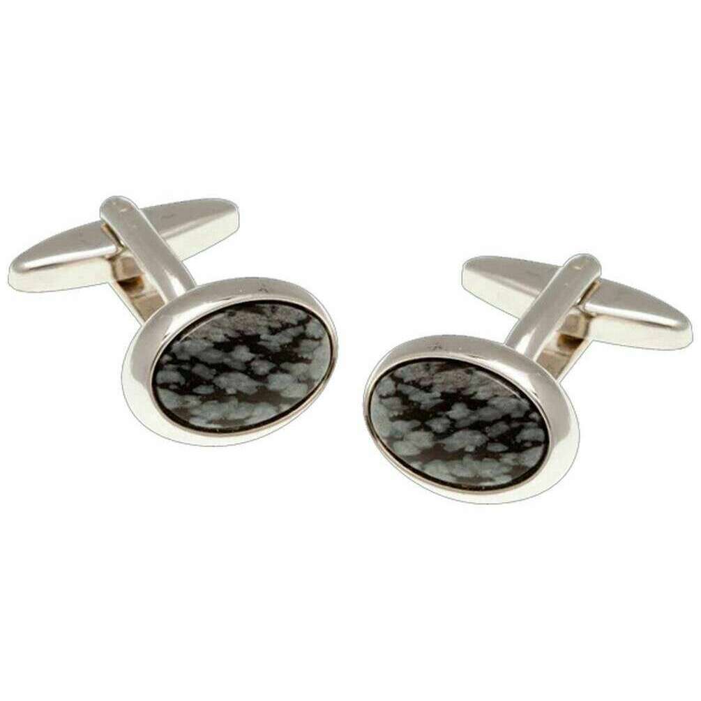 David Van Hagen Boutons de manchette ovales flocon de neige - Noir/Gris/Argent